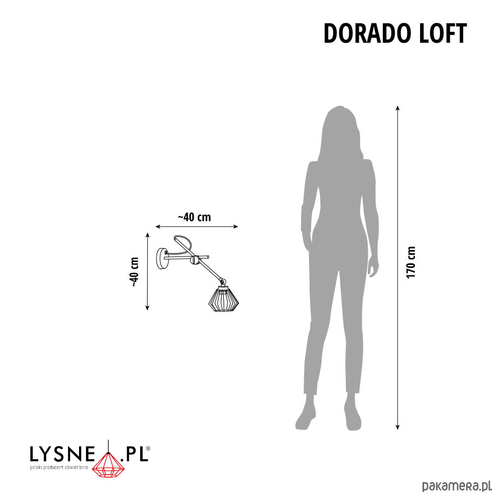 Lampa na ścianę w stylu industrialnym LOFT DORADO świetnie komponować się będzie ze stalowymi meblami, drewnianymi elementami i licznymi przeszkleniami. Oświetlenie można umieścić zarówno w pobliżu łóżka w sypialni, jak i obok kanapy w salonie czy nawet przy stole w kuchni. Lampy loftowe na ścianę takie jak ta cechują się nie tylko ekstrawaganckim stylem ale też funkcjonalnością. Stelaż posiada ruchome ramię umożliwiające manewr w płaszczyźnie góra-dół. Lampa dobrze współgrać będzie z chłodną kolorystyką, najlepiej utrzymaną w odcieniach szarości.