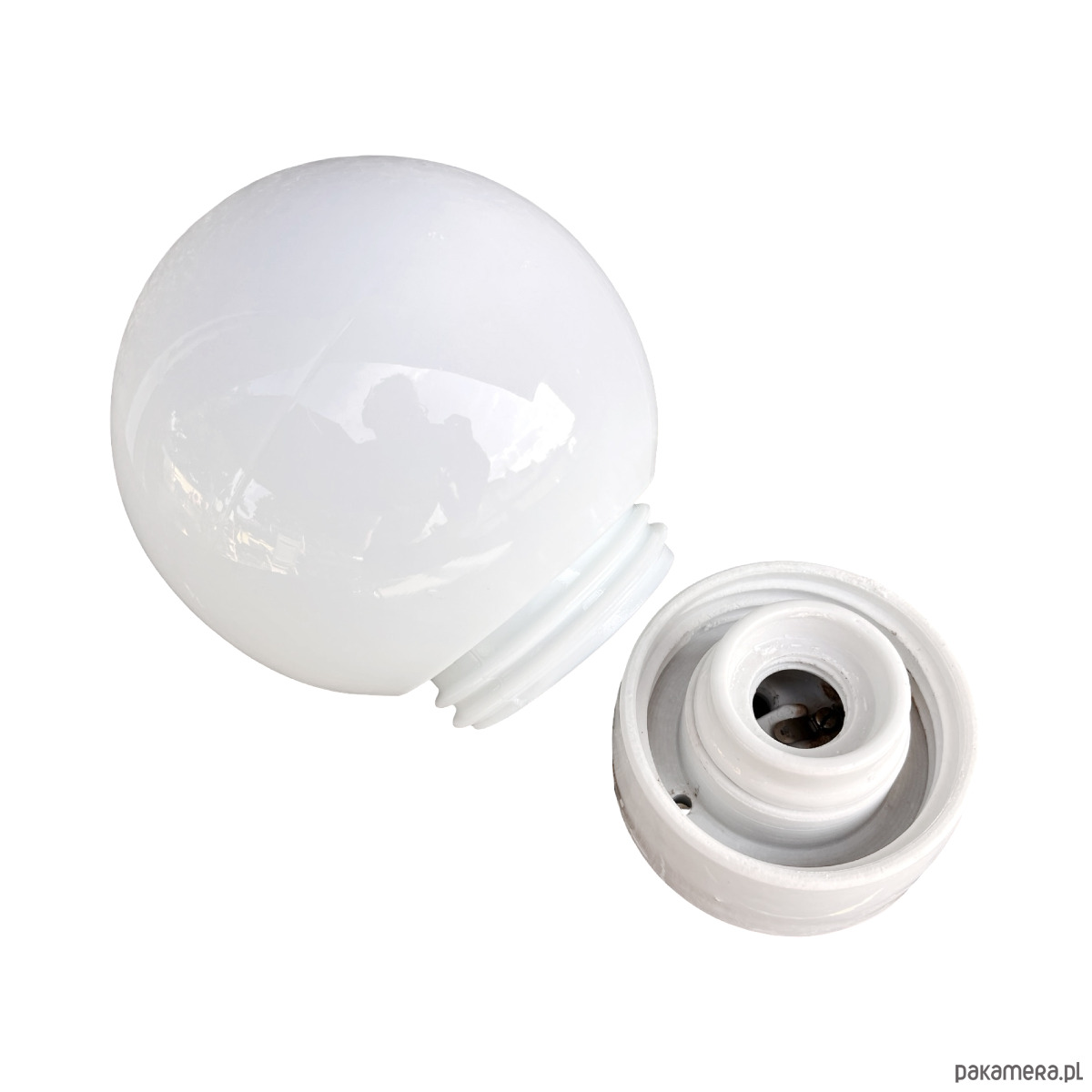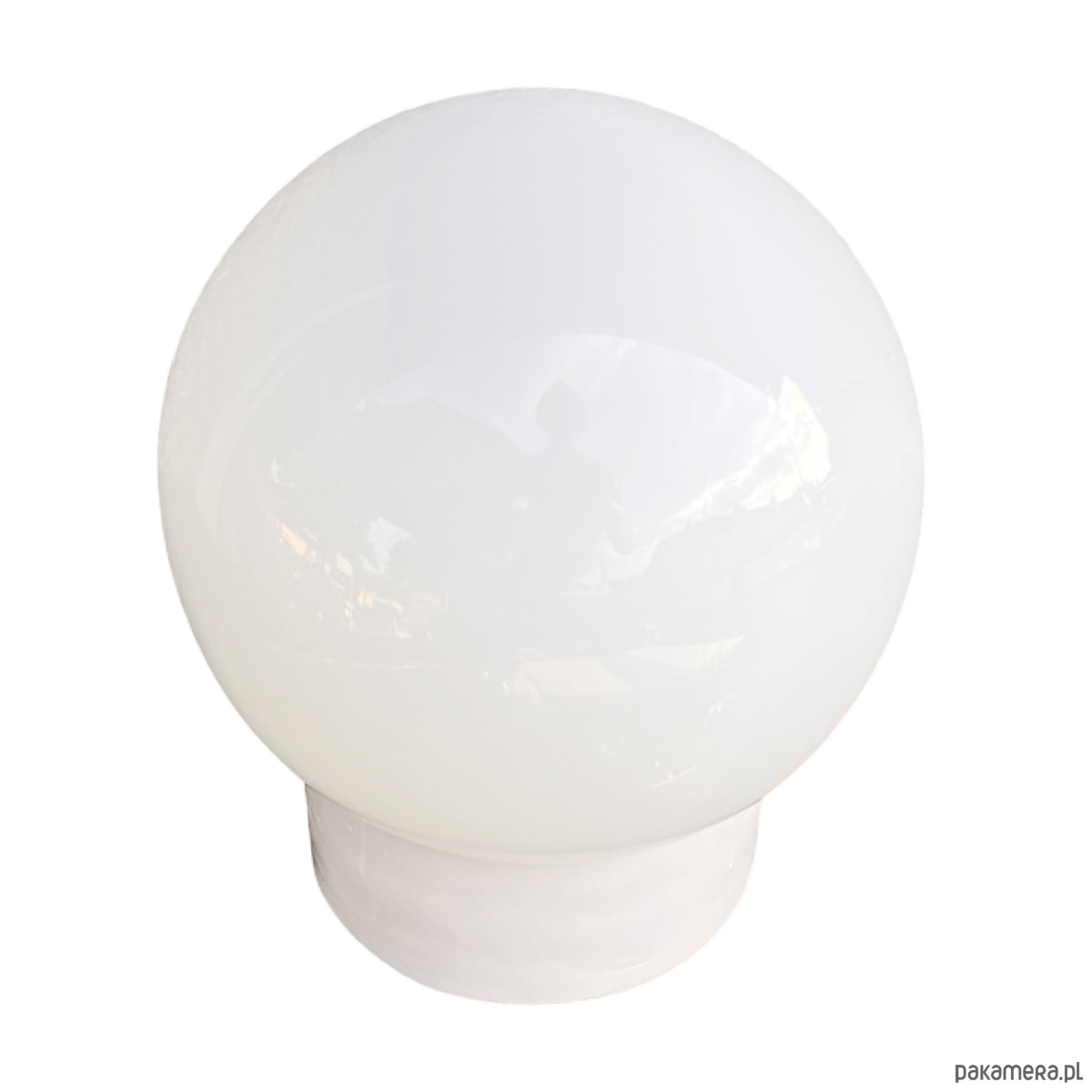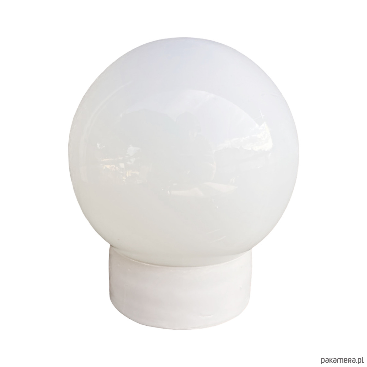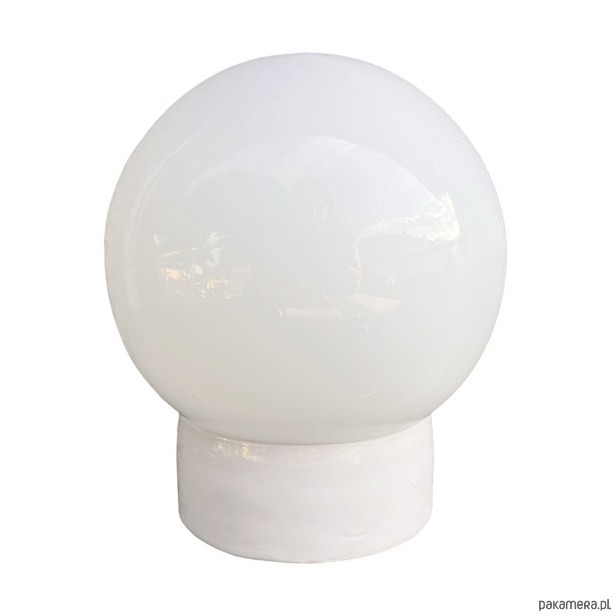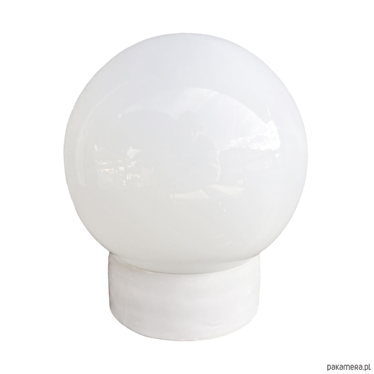 Oryginalny kinkiet ścienny wyprodukowany w latach 60. XX wieku przez Fabrykę Materiałów Światłoczułych FOTON w Polsce. Model ten charakteryzuje się ceramiczną, prostą podstawą oraz dużym kloszem w formie białej, szklanej kuli, typowym dla oświetlenia przemysłowego i użytkowego tamtego okresu.