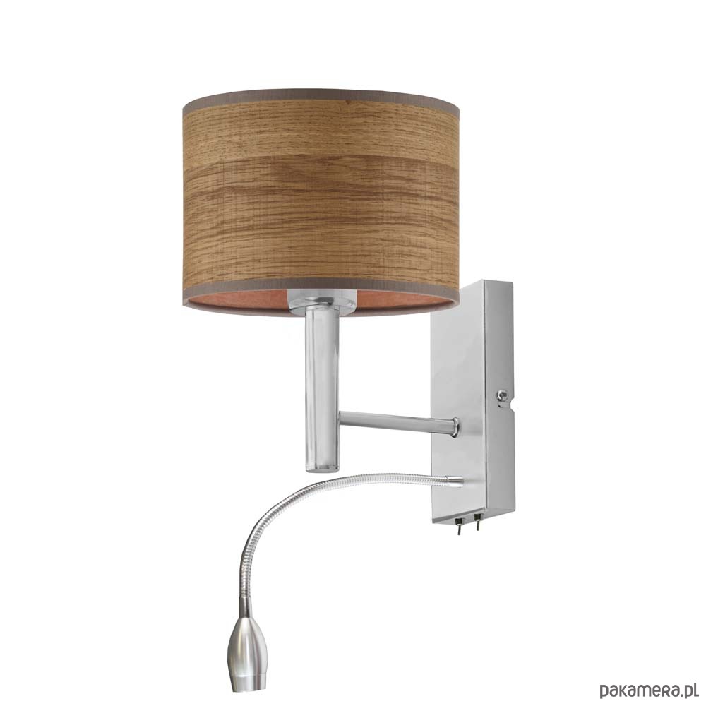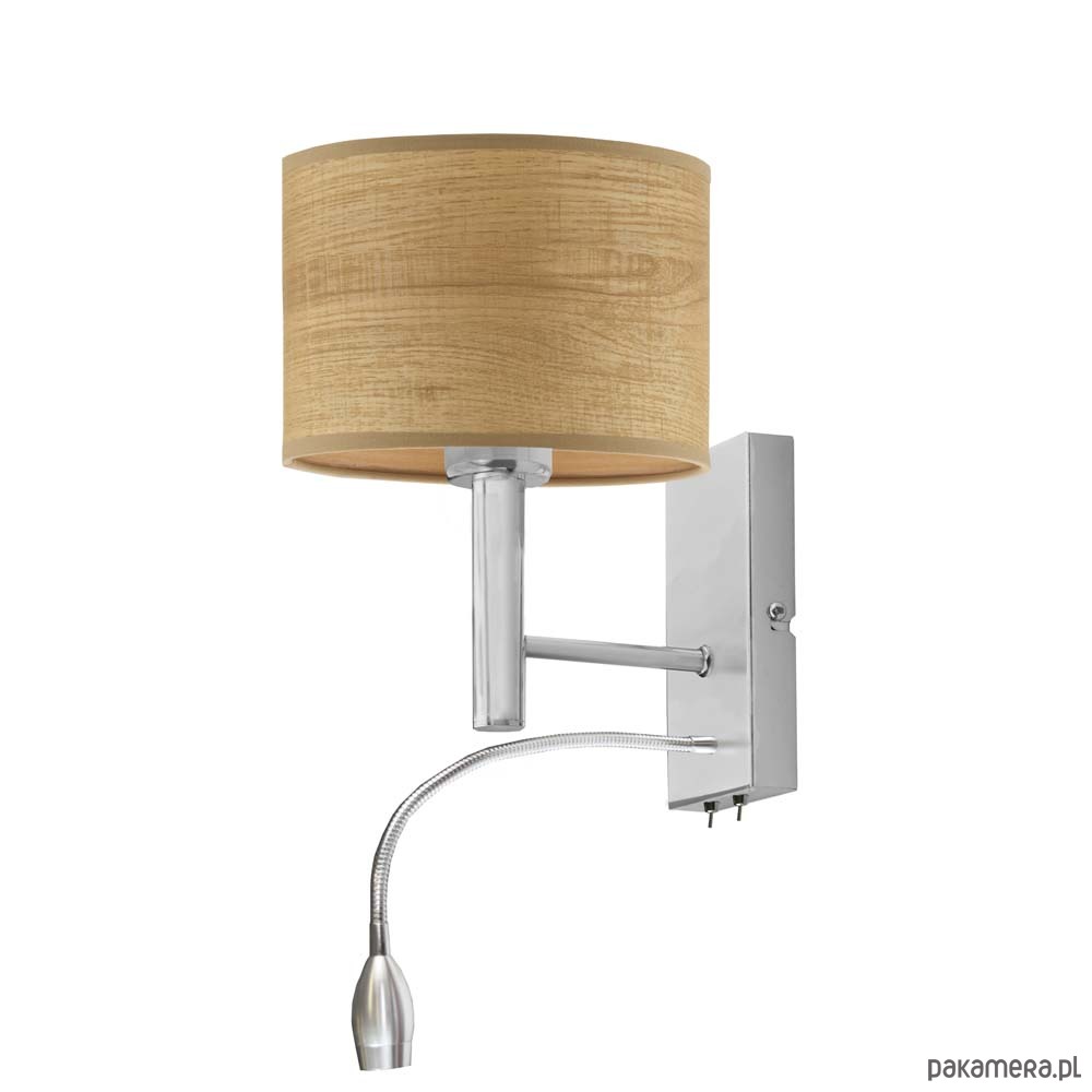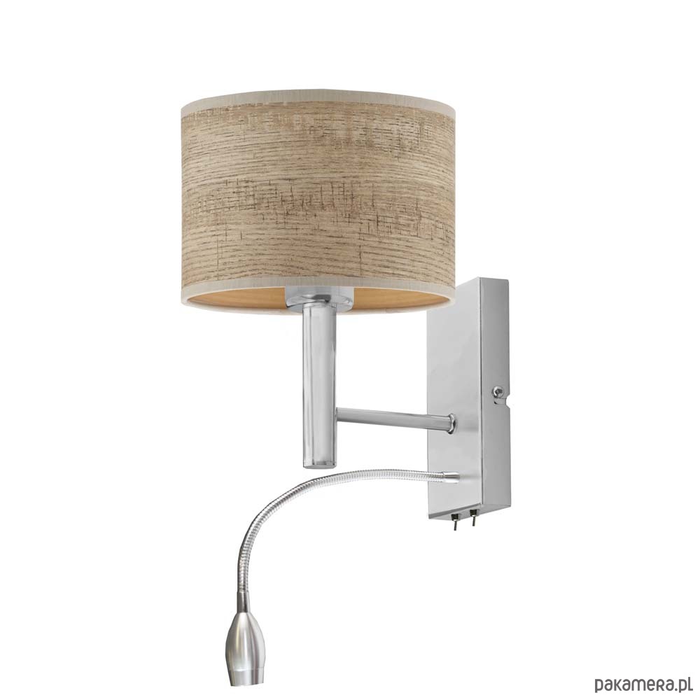 Kinkiet ścienny FLORYDA z linii ECO posiada 2 źródła światła – główne montowane na oprawkę z gwintem E27 o mocy 60W (również żarówki LED). Pomocnicze źródło światła w postaci panelu LED o mocy 5W umieszczone jest na korpusie kinkietu. Peszel LED posiada giętkie, regulowane ramię. Oprócz kierunkowego strumienia światła oddawanego przez panel LED, lampa ścienna FLORYDA ECO oferuje przytulne oświetlenie główne – skierowane ku górze i dołowi a rozproszone na powierzchni całego abażura. Na korpusie lampy ściennej zamontowano 2 przełączniki dźwigniowe, dzięki którym ze źródeł światła można korzystać oddzielnie i niezależnie. Jest to niezwykłe praktyczne rozwiązanie.