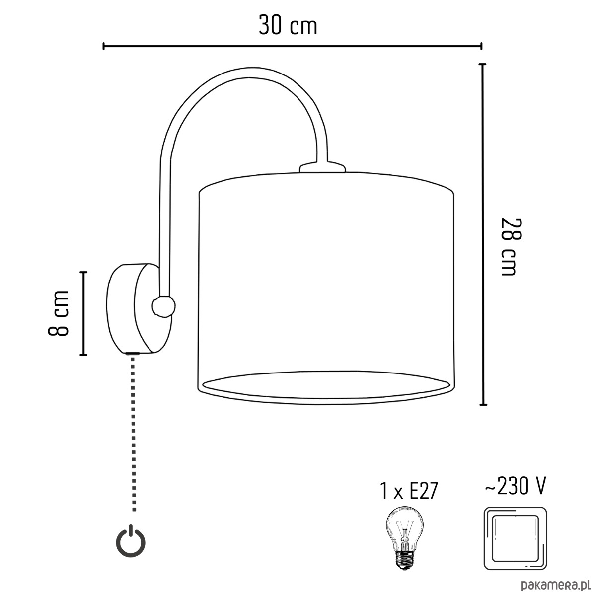 Kinkiet jest idealnym rozwiązaniem zastępującym lampkę nocną. Idealna do salonu, sypialni, jadalni lub biura.