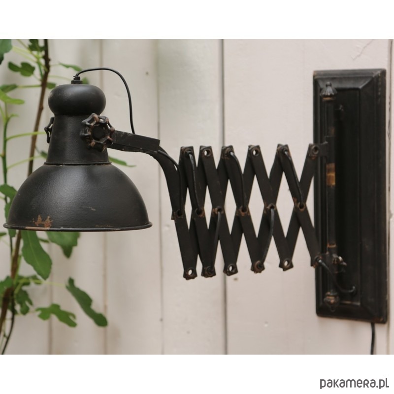 Kinkiet wyglądem przypominający starą, zardzewiałą lampę z magazynu. Z wysięgnikiem. Idealna do wyposażenia wnętrz mieszkalnych jak i lokali użytkowych. Kinkiet wykonany jest z metalu celowo stylizowanego na stary i zniszczony. W kolorze czarnym.
