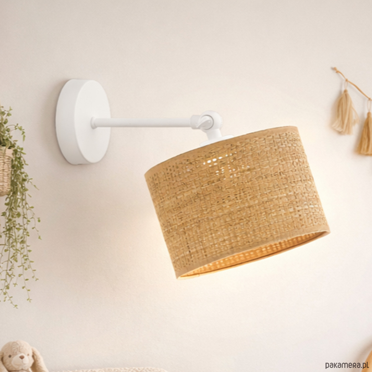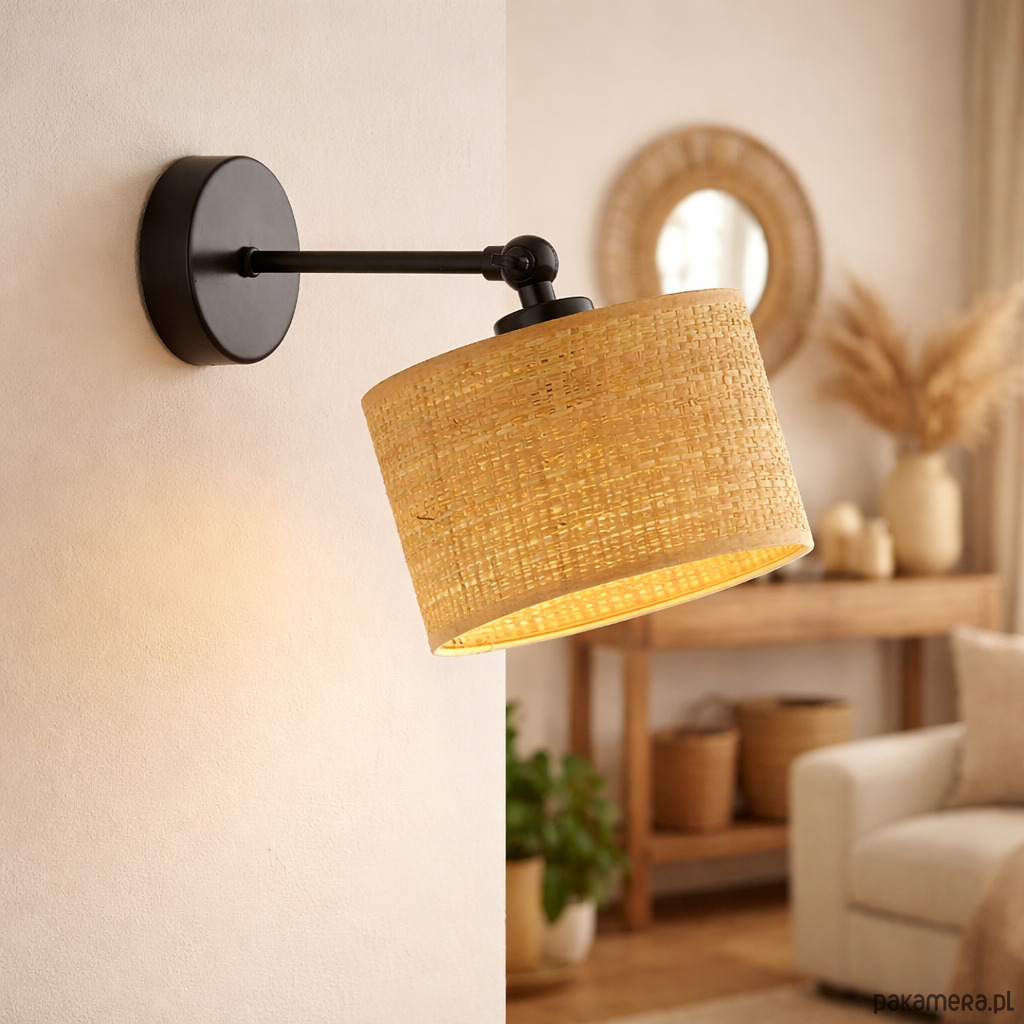 Kinkiet na przegubie do czytania rattanowy abażur TETE BOHO