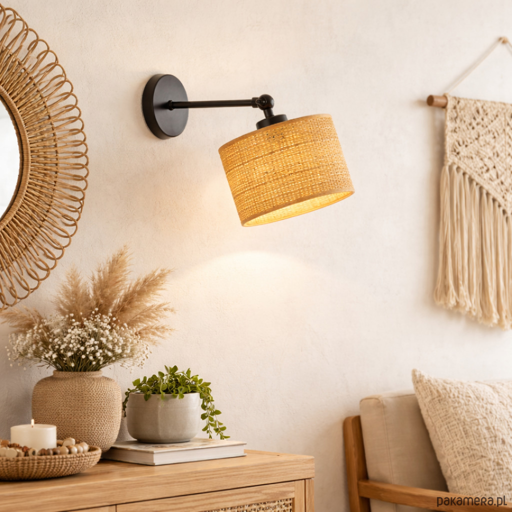 Ruchomy kinkiet nad lóżko w stylu rustykalnym TETE BOHO