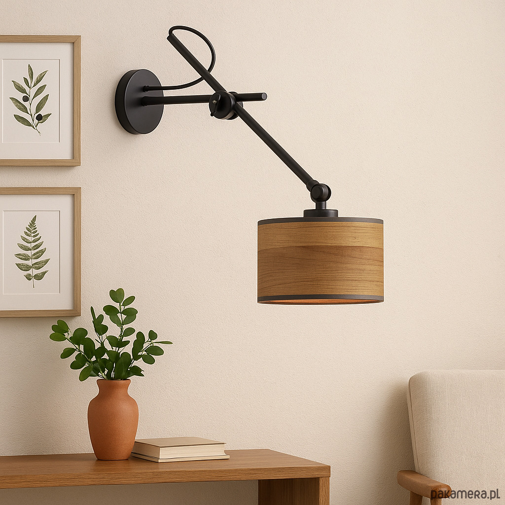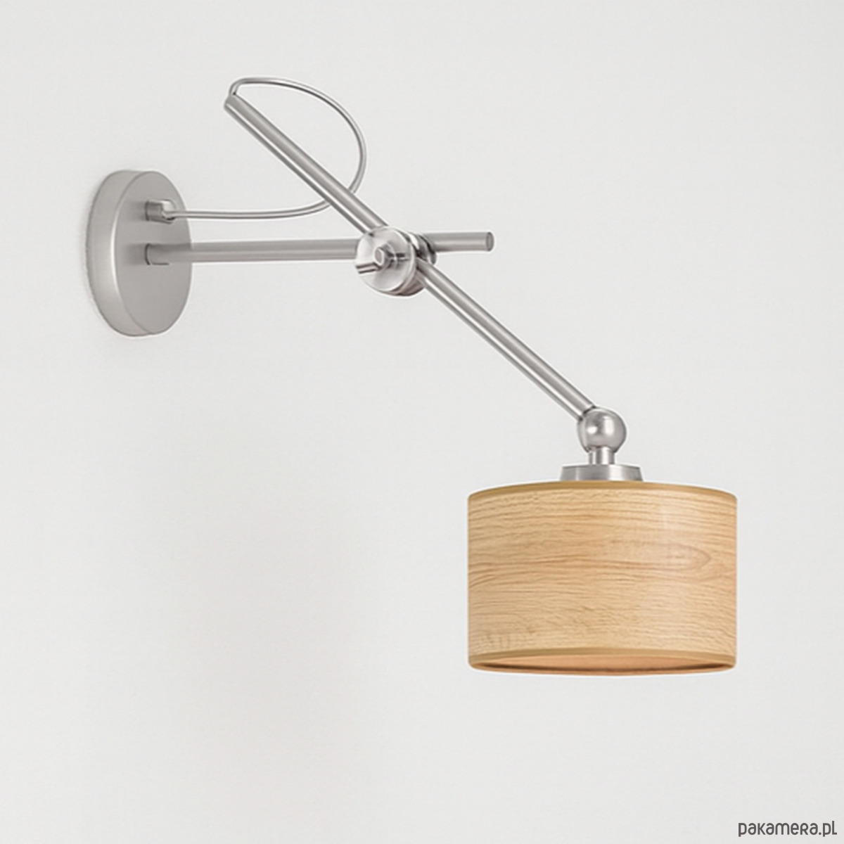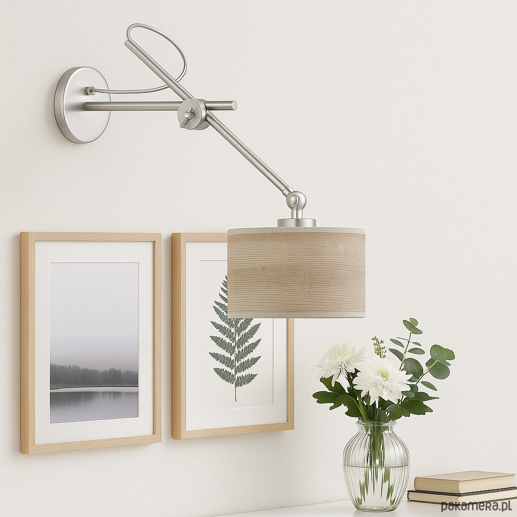 Regulowany kinkiet ścienny HAMILTON ECO to prawdziwa perła wśród oświetlenia, łącząca w sobie elegancję i nowoczesność. To, co wyróżnia kinkiet na regulowanym ramieniu HAMILTO ECO to nie tylko jej funkcjonalność, ale także możliwość personalizacji. Wybór koloru abażura jak i konstrukcji z bogatej palety kolorystycznej oferuje wiele możliwości aranżacyjnych. Abażury z tej serii są wykonane z innowacyjnego tworzywa PVC, które idealnie imituje naturalną strukturę drewna – fornir, co dodaje lampom autentyczności i ciepłego charakteru. A la fornirowe klosze nie tylko pięknie się prezentują, ale są też trwałe i łatwe w utrzymaniu, co stanowi dodatkowy atut dla współczesnych przestrzeni. Średnica klosza wynosi 17,5 cm, a jego wysokość to 12 cm. Lampa doskonale prezentuje się pojedynczo jak i w grupie z innymi lampami, tworząc efektowne instalacje świetlne.