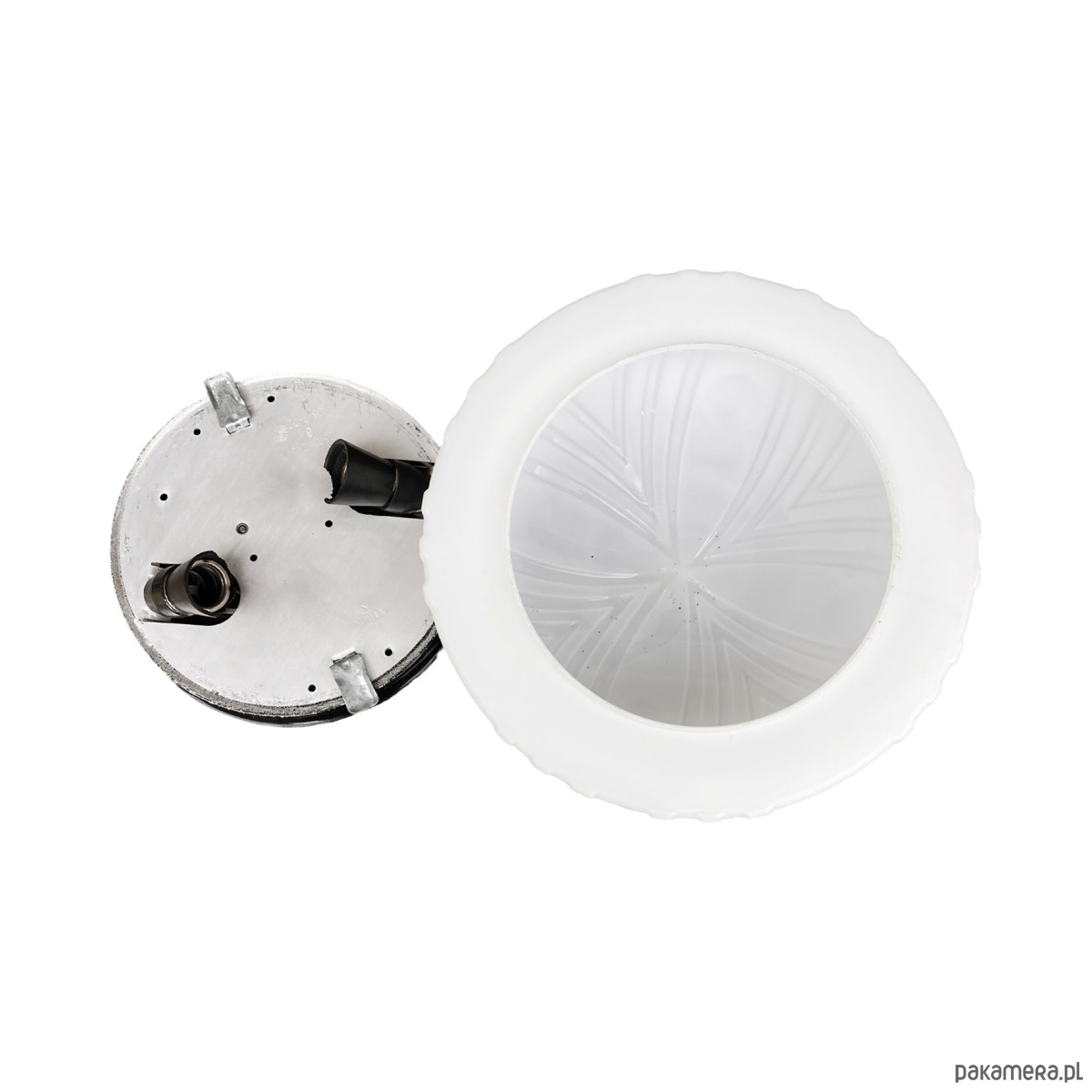 Klosz wykonany jest z grubego, mleczno-białego szkła o geometrycznym, żłobkowanym wzorze, przypominającym muszlę lub falujące linie. Dzięki charakterystycznej formie i jakości wykonania, oprawa ta stała się ikoną czechosłowackiego wzornictwa modernistycznego.