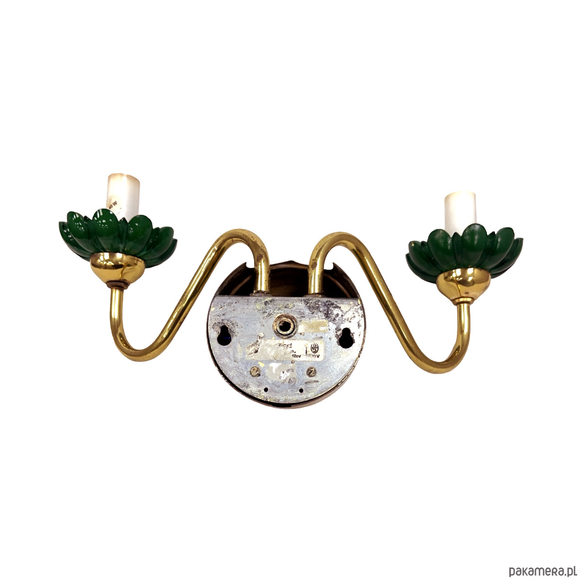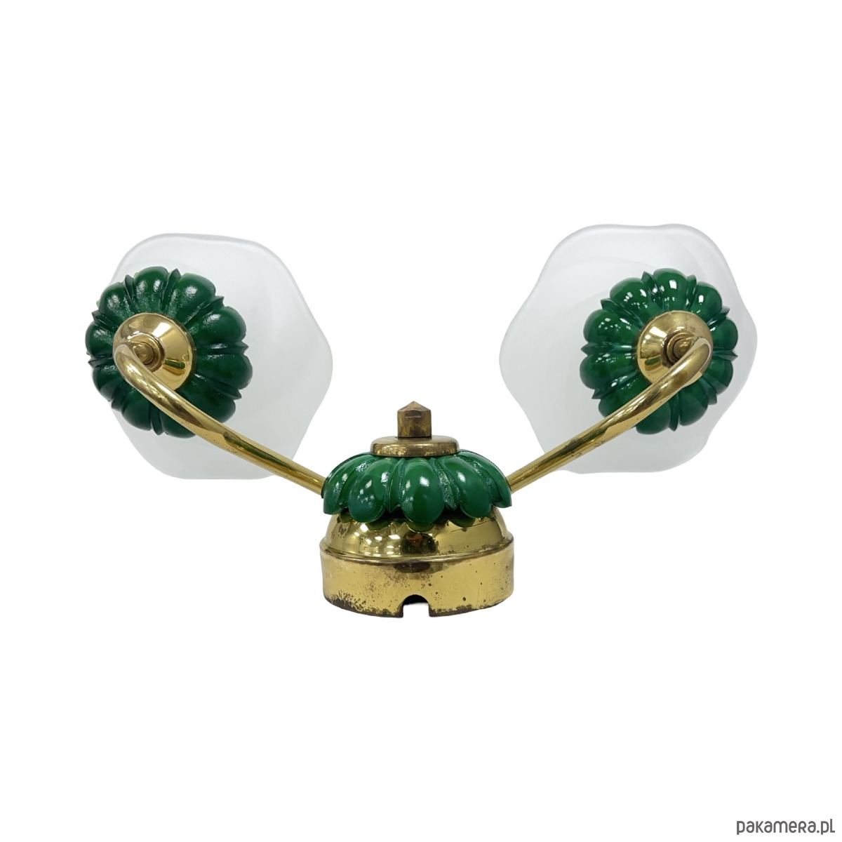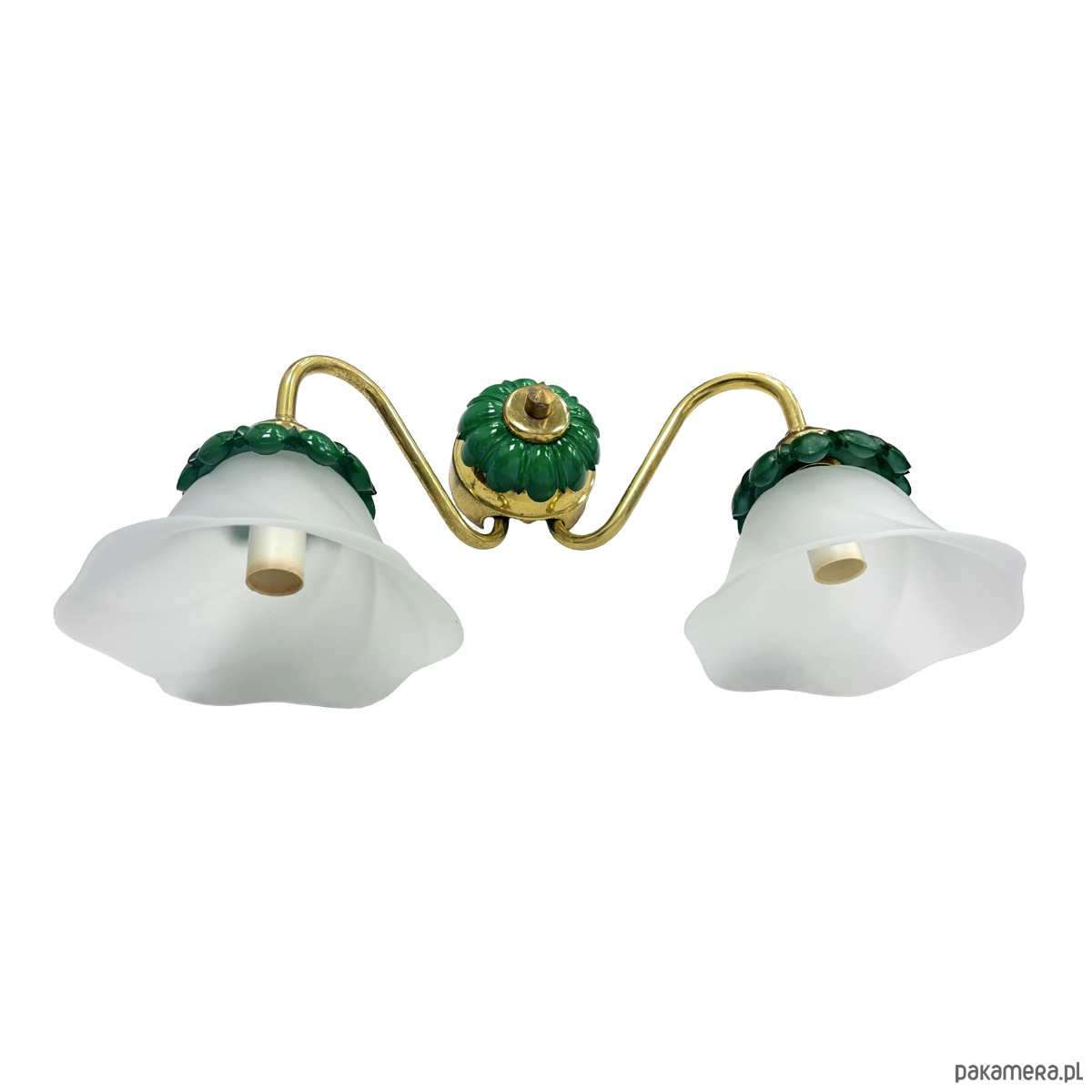 Kinkiet podwójny PRECIOSA Czechosłowacja lata 80. szkło malachitowe mosiądz