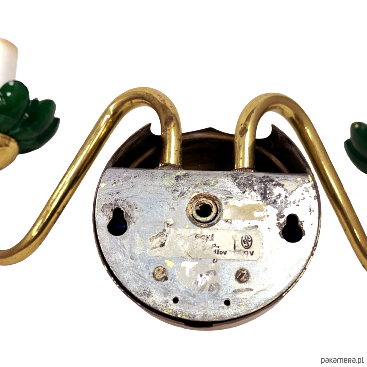 Oryginalny podwójny kinkiet ścienny wyprodukowany w Czechosłowacji w latach 80. XX wieku, utrzymany w stylistyce charakterystycznej dla wzornictwa PRECIOSA.