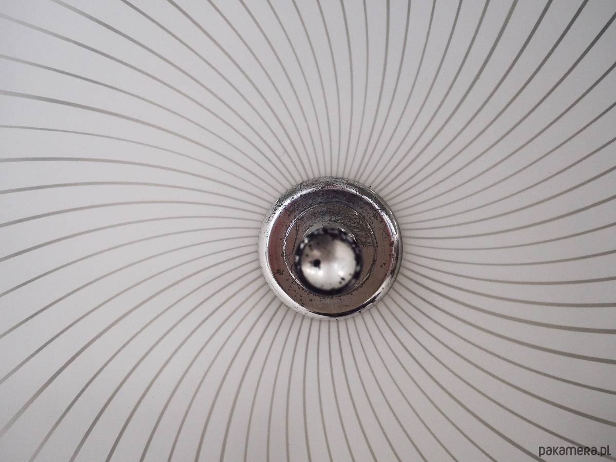 Wykonany z metalu i tworzywa sztucznego w kolorze białym.