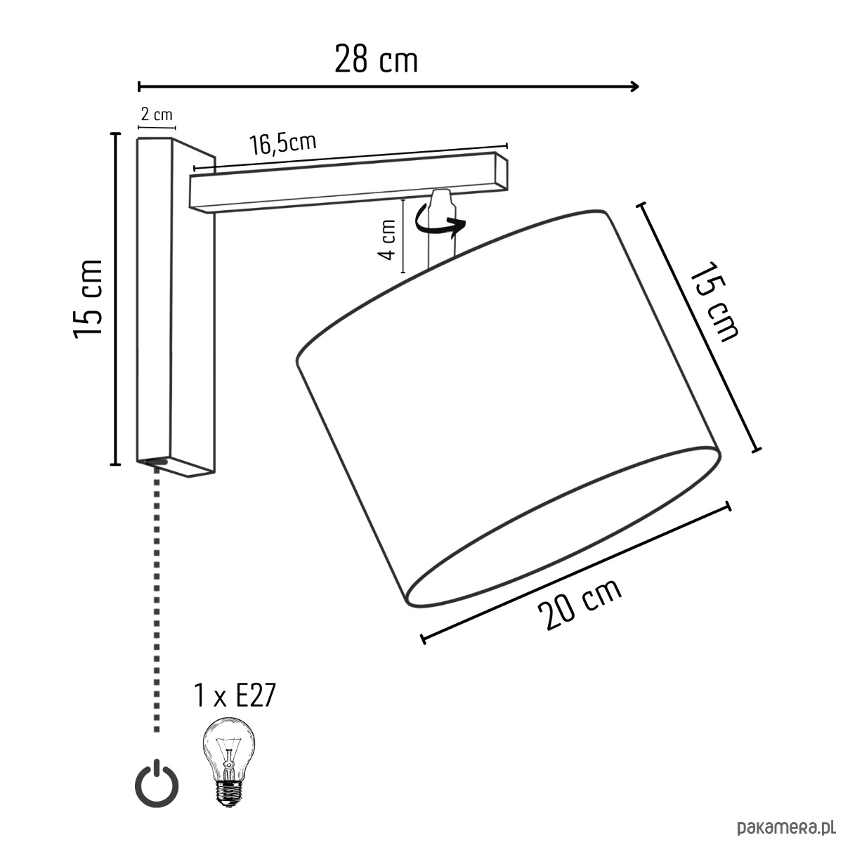 Kinkiet jest idealnym rozwiązaniem zastępującym lampkę nocną. Idealna do salonu, sypialni, jadalni lub biura. Kompatybilna z żarówkami E27 (brak w zestawie).