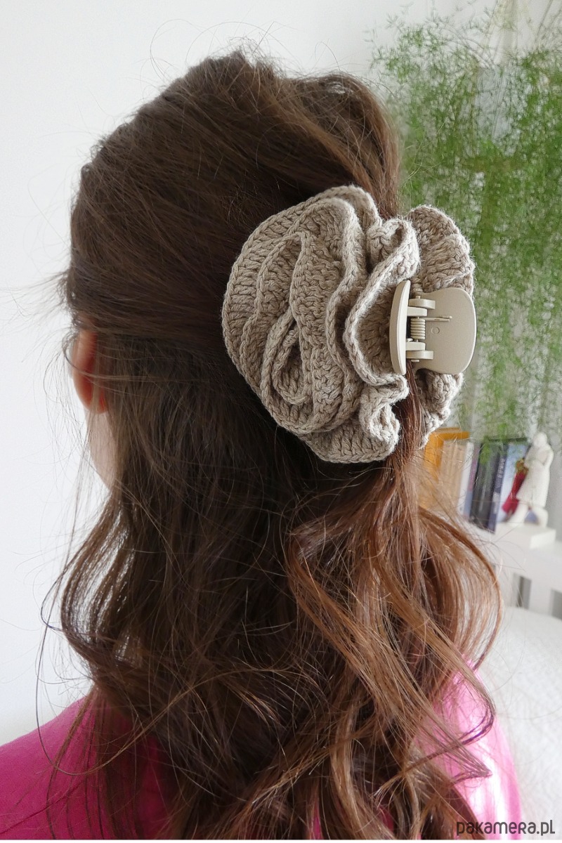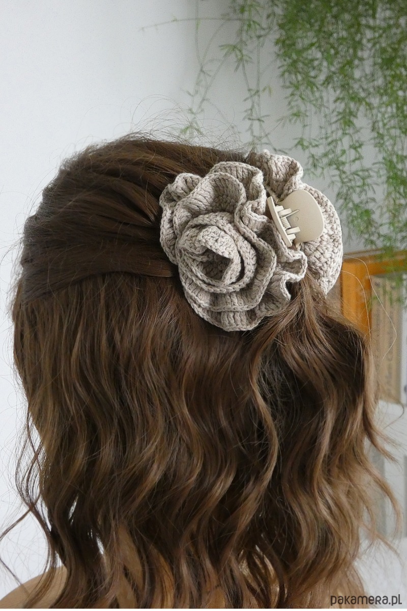 Dodaj uroku swojej fryzurze dzięki unikalnej klamrze do włosów. ozdobionej szydełkowym motywem kwiatowym. Wykonana z dbałością o każdy detal z miękkiej, wysokiej jakości włóczki. Idealna dla miłośniczek stylu boho, vintage i handmade.