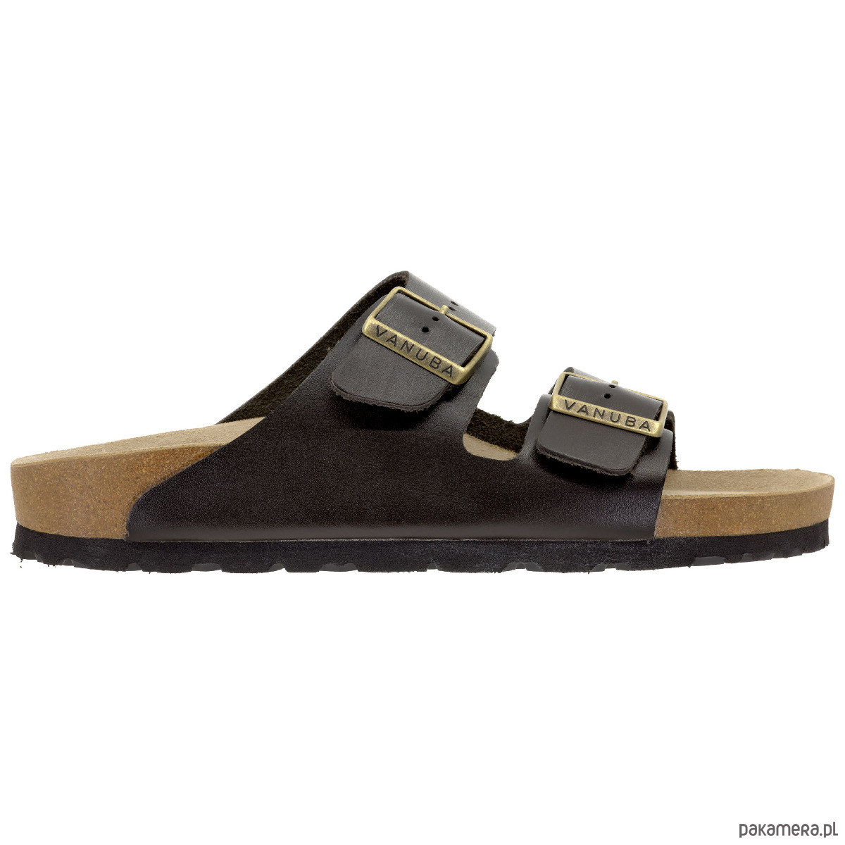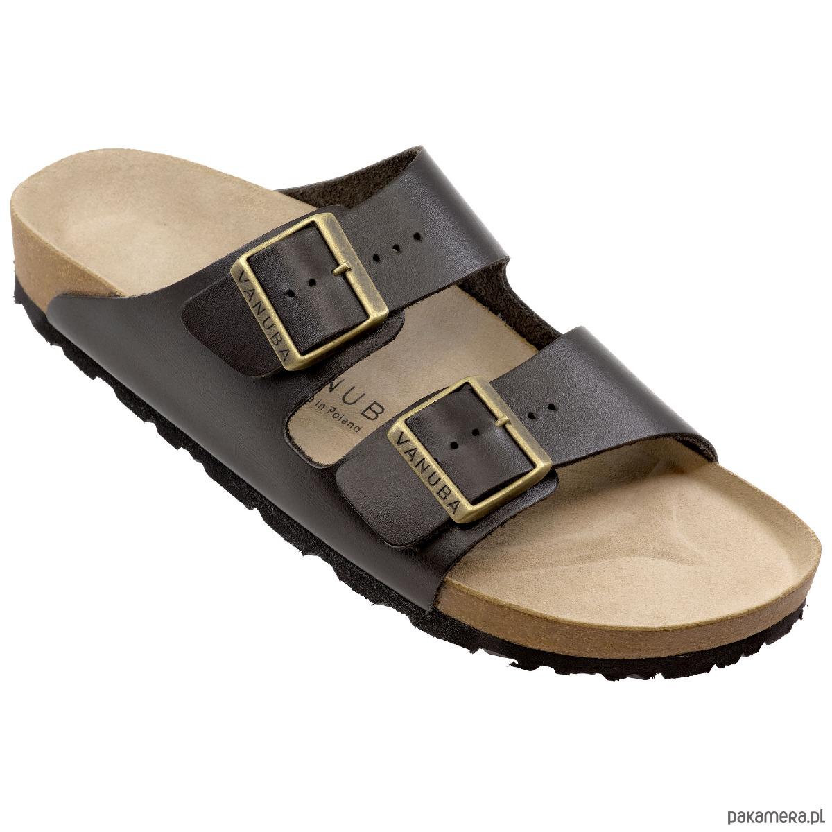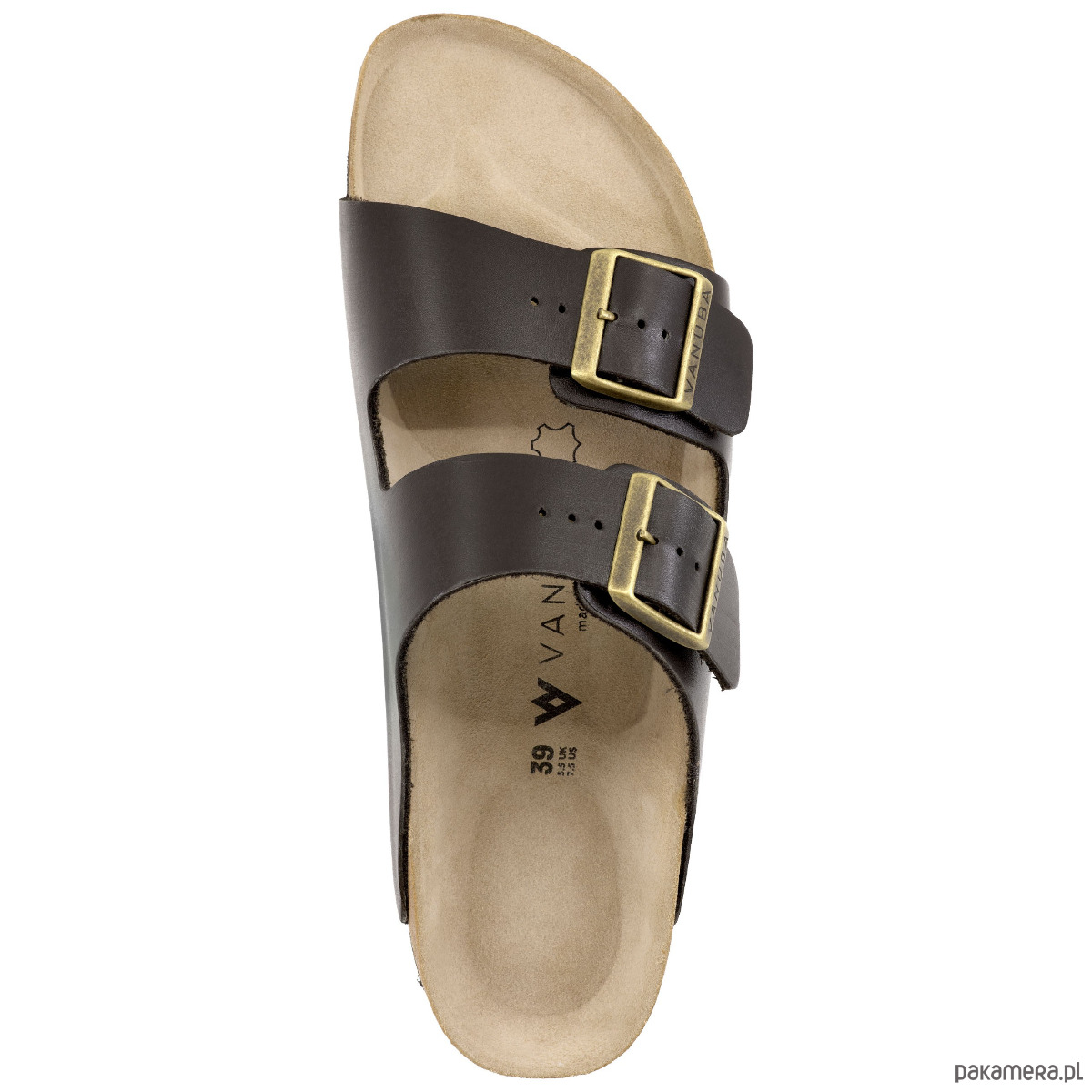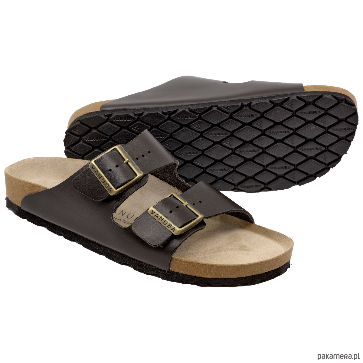 Klapki damskie VANUBA skórzane na korku profilowane brązowe