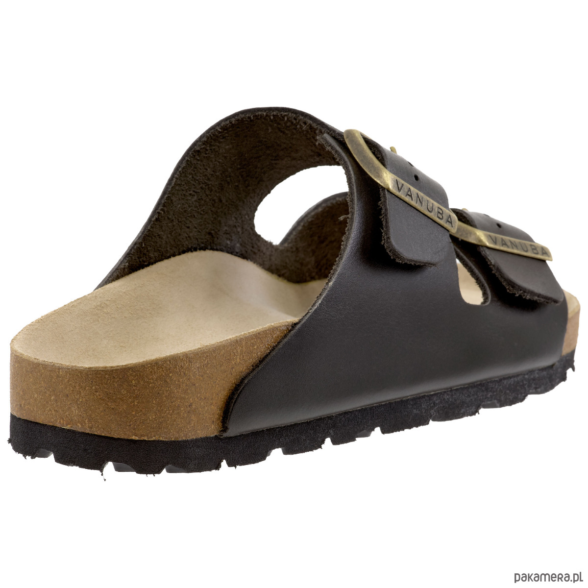 Wnętrze klapek stanowi specjalnie wyprofilowana wkładka korkowa pokryta naturalną skórą, która dopasowuje się do anatomicznego kształtu stopy. Taka konstrukcja wspiera prawidłowe ułożenie stopy i znacząco zmniejsza zmęczenie podczas dłuższego użytkowania.