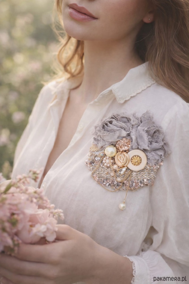 Wzór broszki nawiązuje do nieodległej przeszłości, trochę nostalgiczne trochę staromodne, ale z ponadczasowym stylem i elegancją.