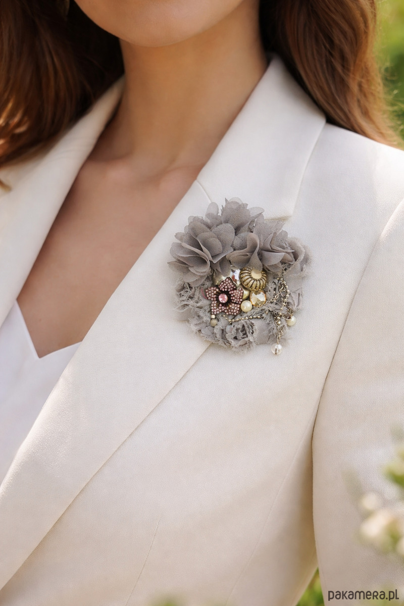 Wzór broszki nawiązuje do nieodległej przeszłości, trochę nostalgiczne trochę staromodne, ale z ponadczasowym stylem i elegancją.