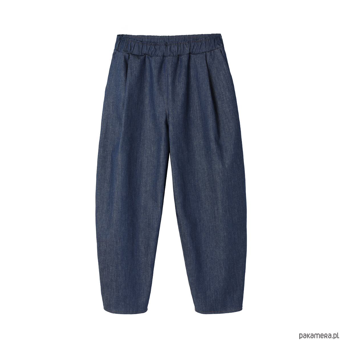 Wygodne spodnie ze zwężaną nogawką o długości 7/8. Wykonane z bawełnianego denimu. Spodnie świetnie się układają i są bardzo przyjemne w użytkowaniu.