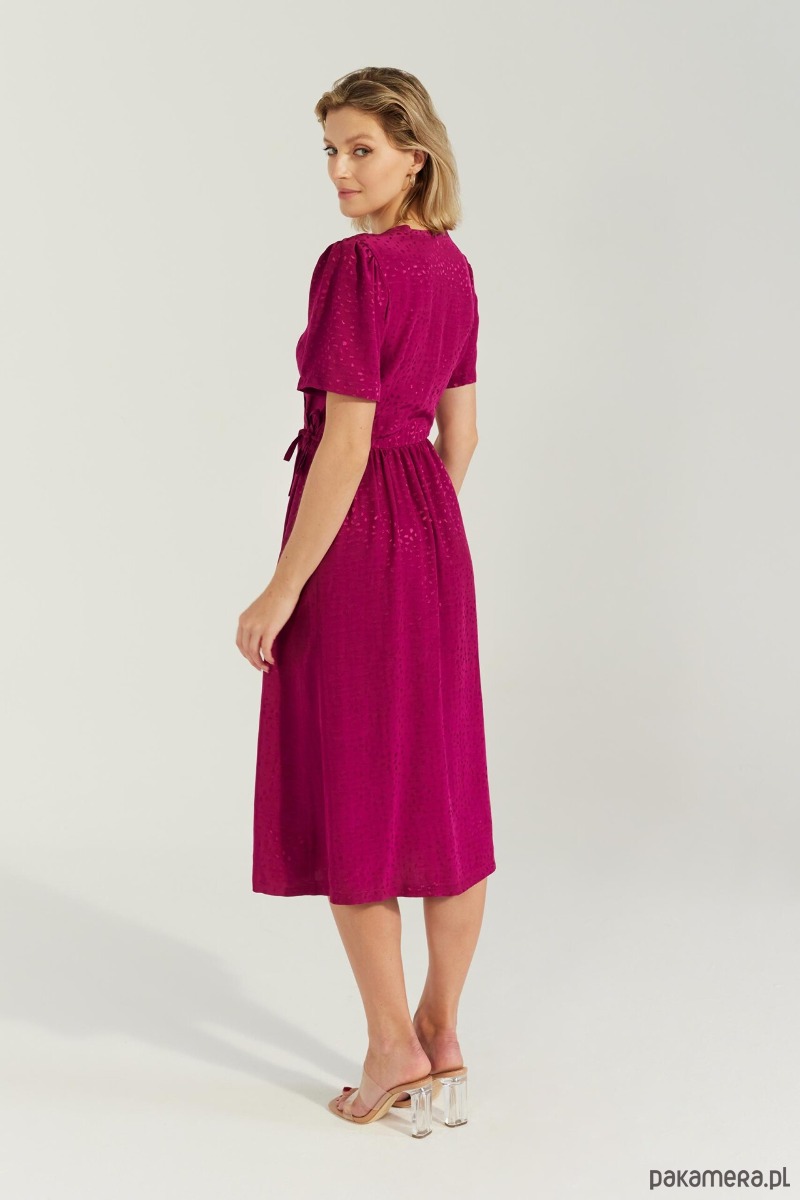 Klara sukienka midi to świadomie zaprojektowany element garderoby — subtelna forma, która akcentuje sylwetkę bez zbędnego blichtru. Uszyta z materiału o miękkiej fakturze, delikatnie otula ciało, pozwalając na swobodę ruchu i naturalne ułożenie tkaniny. Midi jako długość daje równowagę między codzienną funkcjonalnością a wyważoną elegancją, łatwo komponując się zarówno z niskimi, jak i wyższymi obcasami.