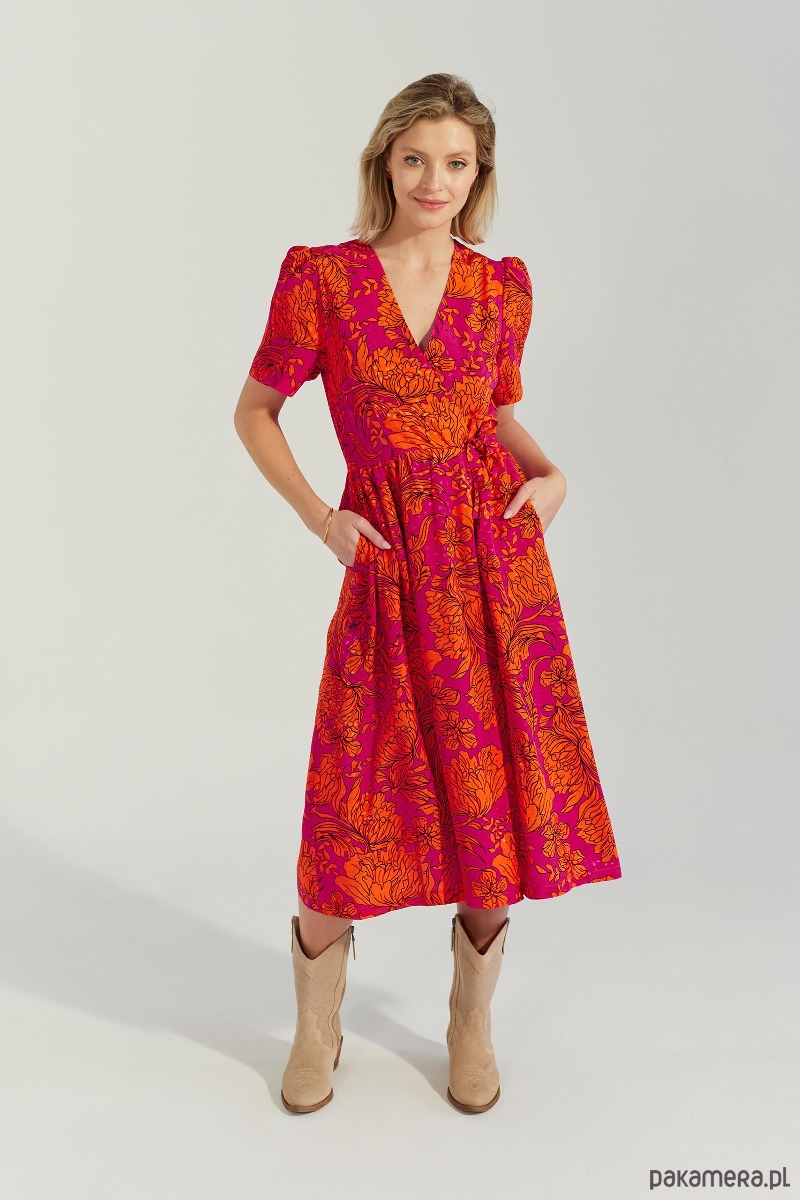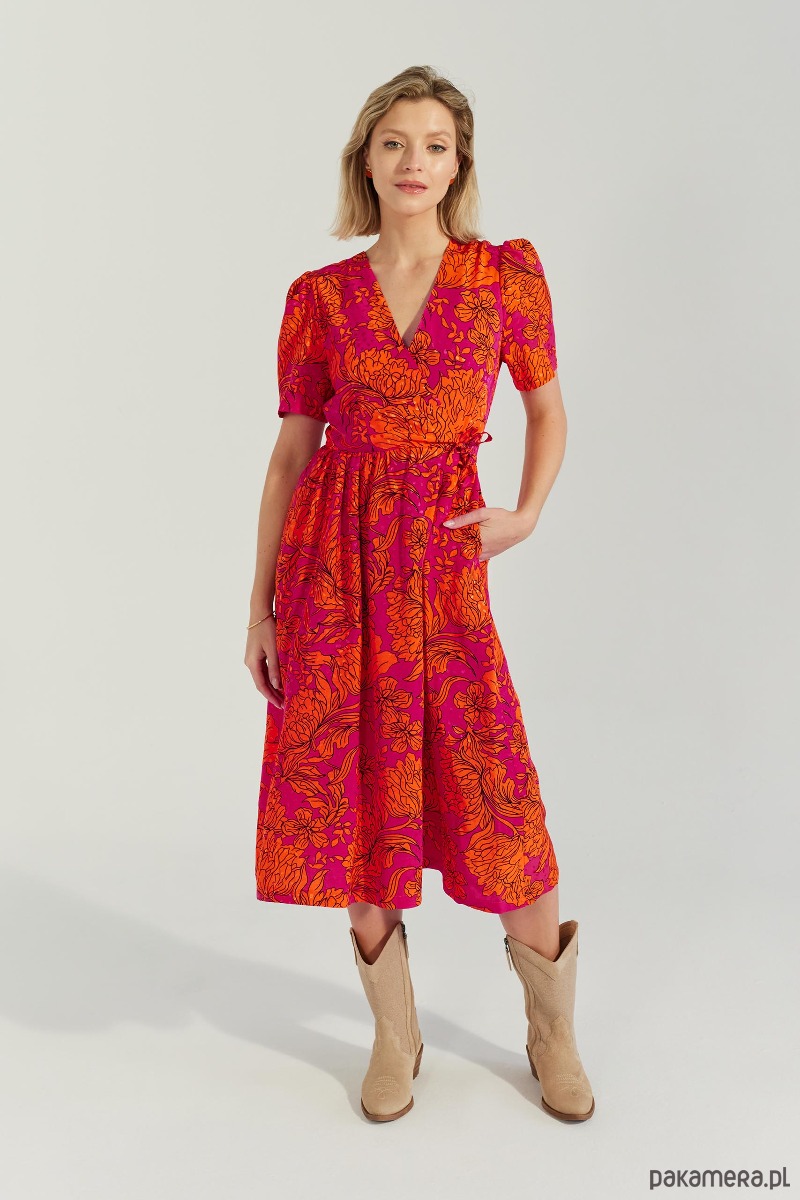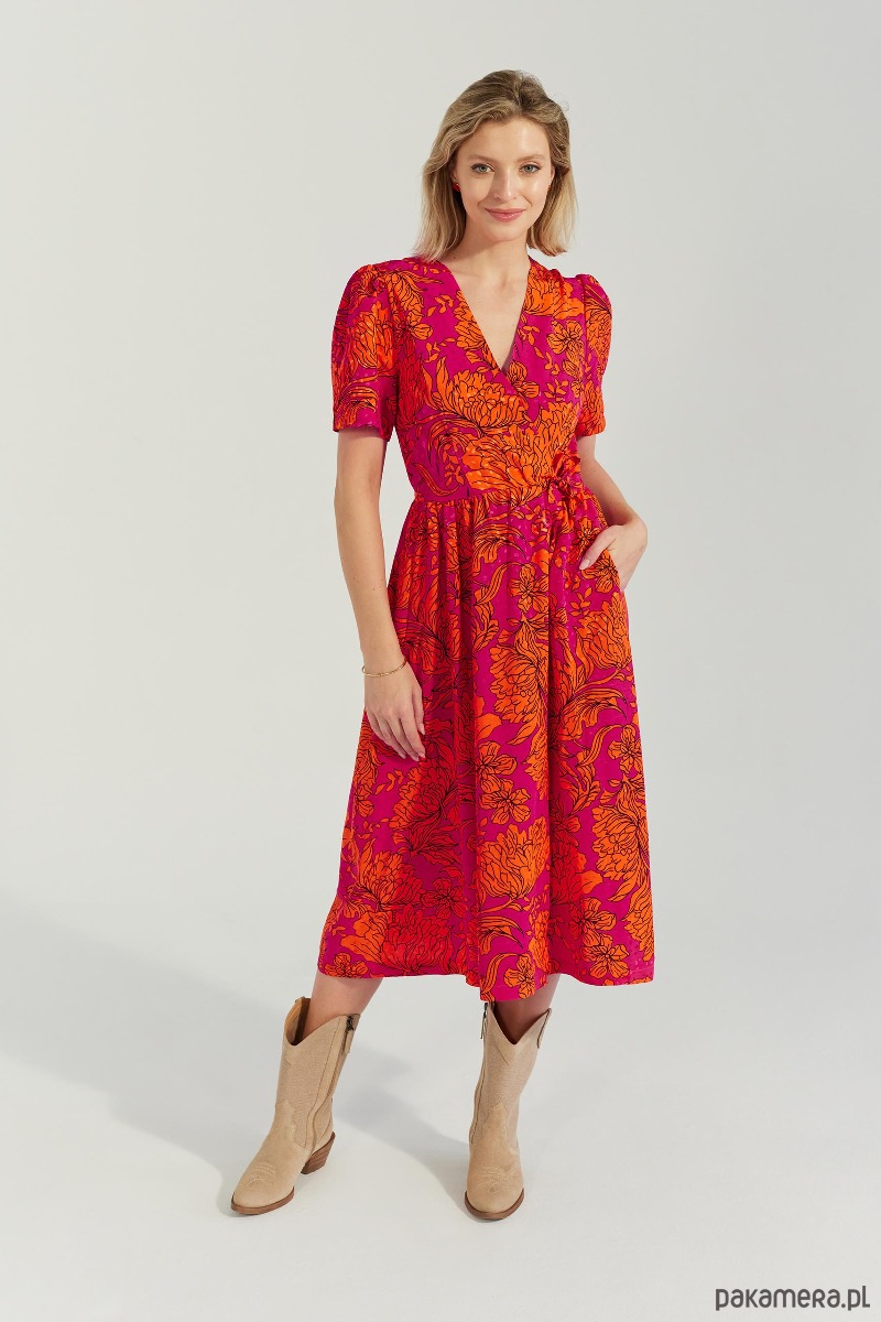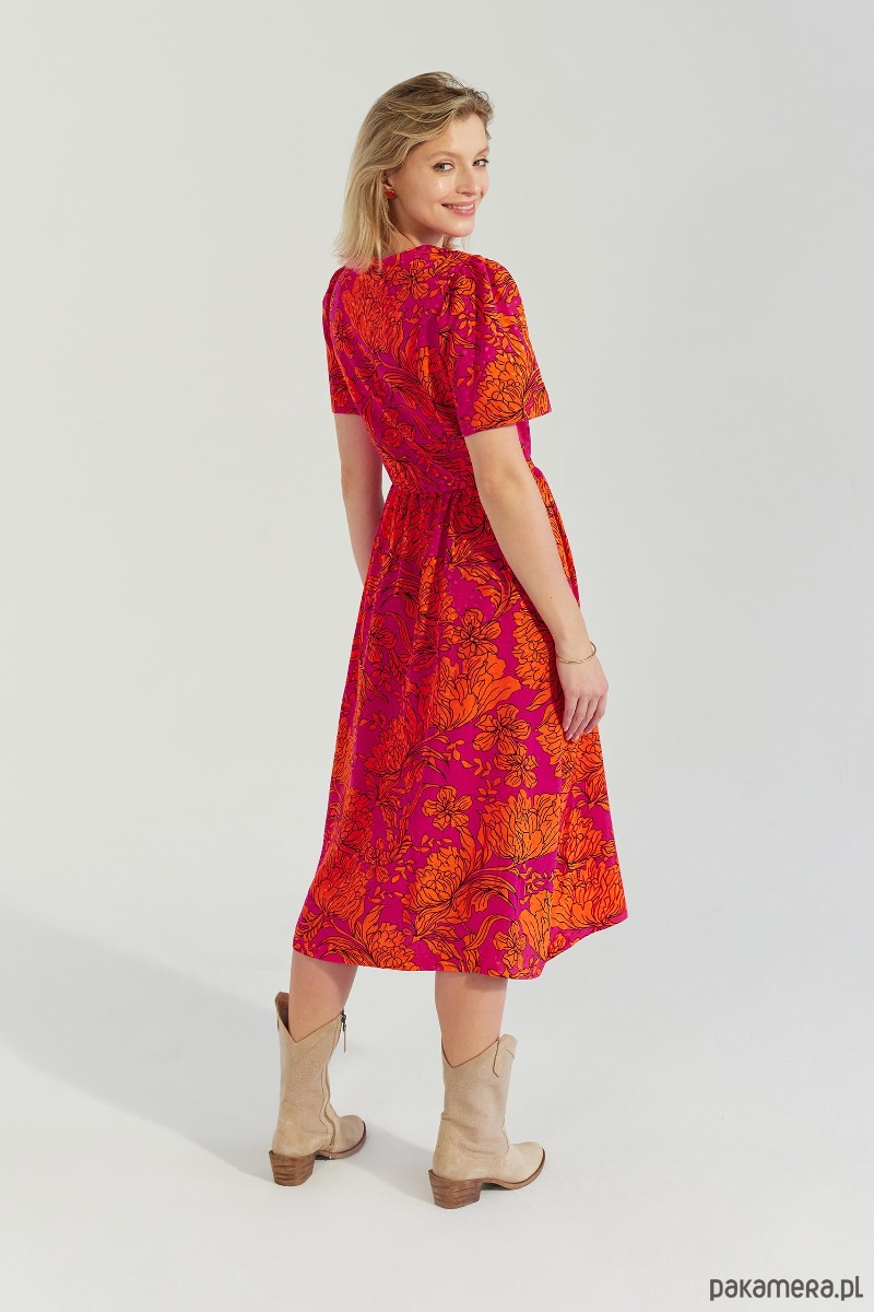 Klara — sukienka midi zaprojektowana z myślą o harmonii formy i komfortu. Delikatnie dopasowany krój podkreśla sylwetkę z dyskrecją, a długość midi — pomiędzy kolanem a łydką — nadaje kompozycji stonowaną elegancję odpowiednią zarówno na dzień, jak i na wieczór. Materiał układa się miękko, o jedwabistym wykończeniu, co w połączeniu ze starannymi detalami tworzy subtelny, przemyślany efekt.