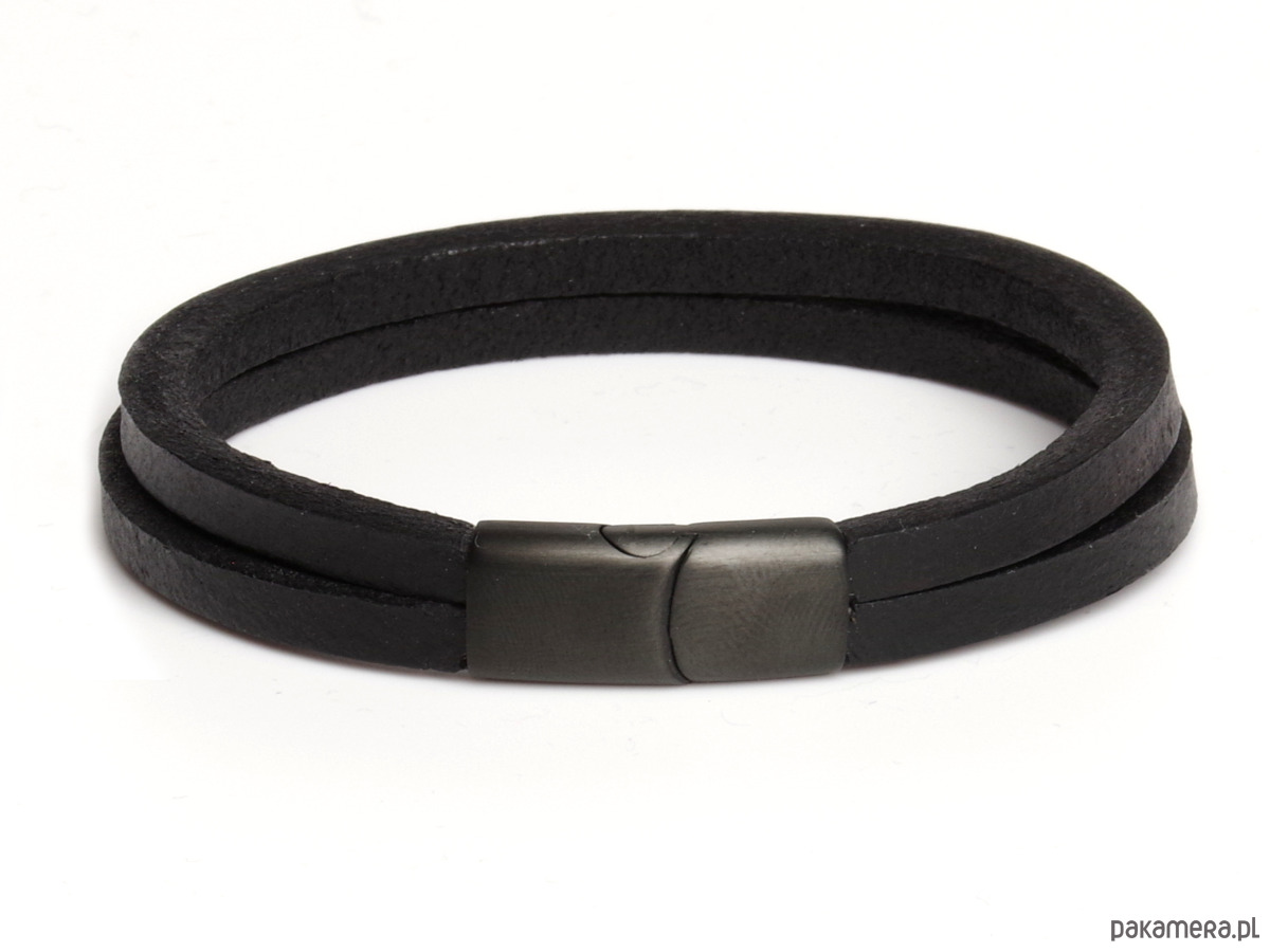 Klasyczna bransoleta męska wykonana z grubego rzemienia gładkiego w kolorze czarnym. Rzemień ze skóry naturalnej garbowany roślinne.