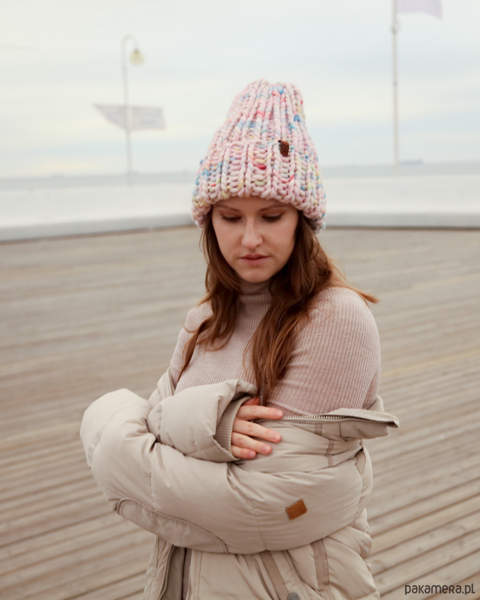 Klasyczna kolorowa pastelowa czapka oversize z grubej wełny