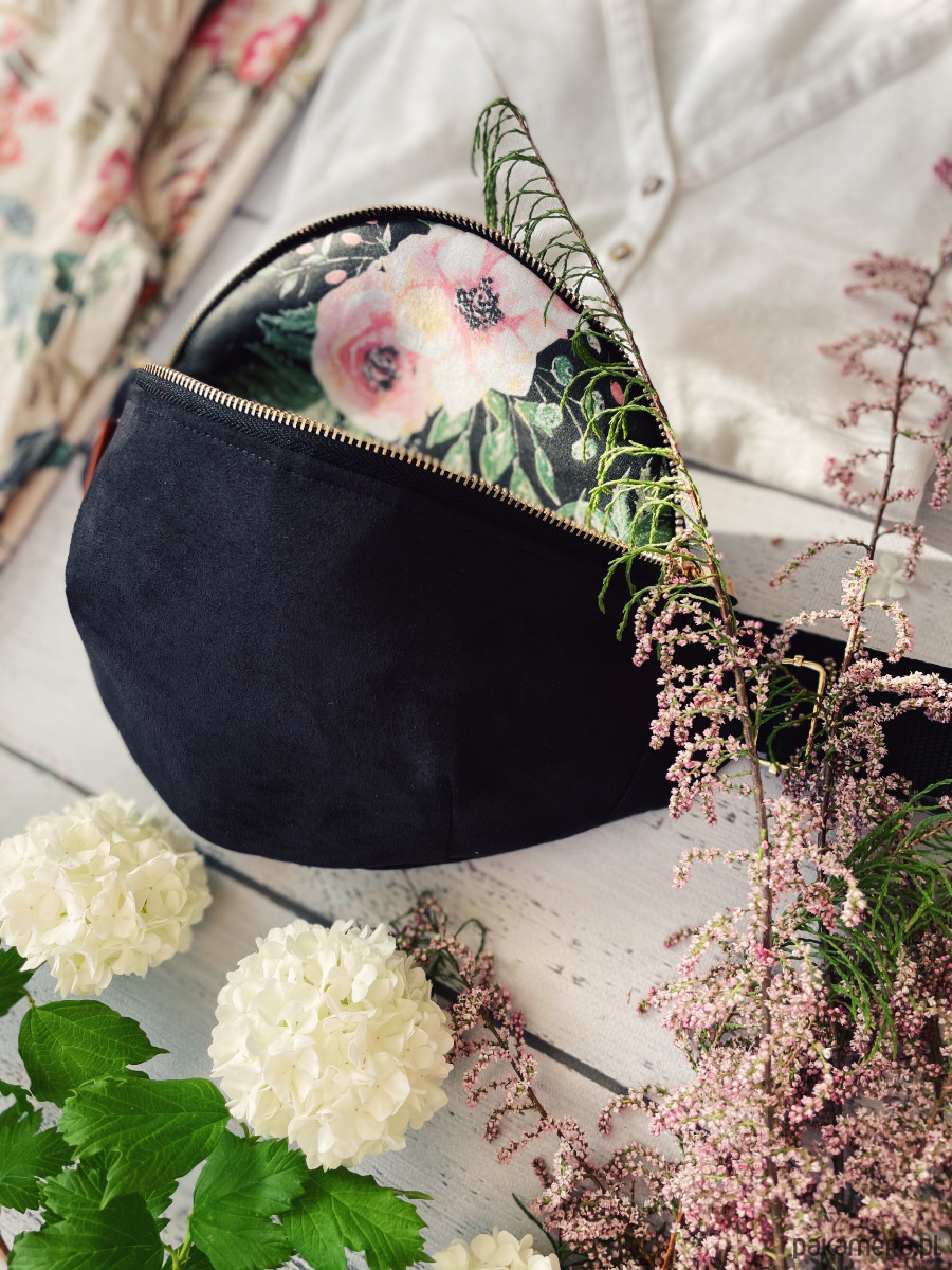 Chloee - prosta i elegancka czarna nerka z eko zamszu. Różane wnętrze bez wątpienia dodaje jej uroku, a złote lub srebrne dodatki niczym biżuteria dodają blasku i charakteru. Chloee sprawdzi się zarówno do stylizacji sportowych jak i do szpilek. Czarna nerka to must have w każdej szafie!