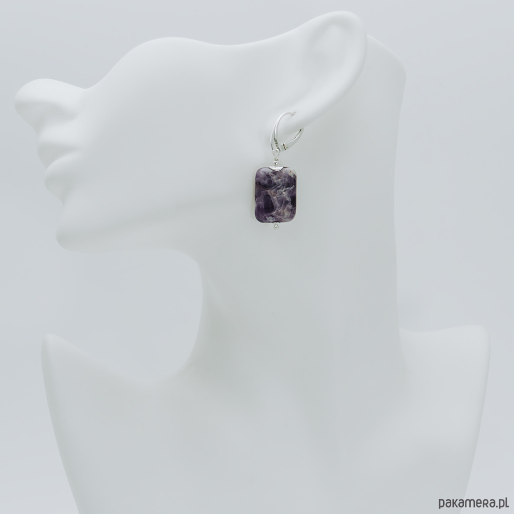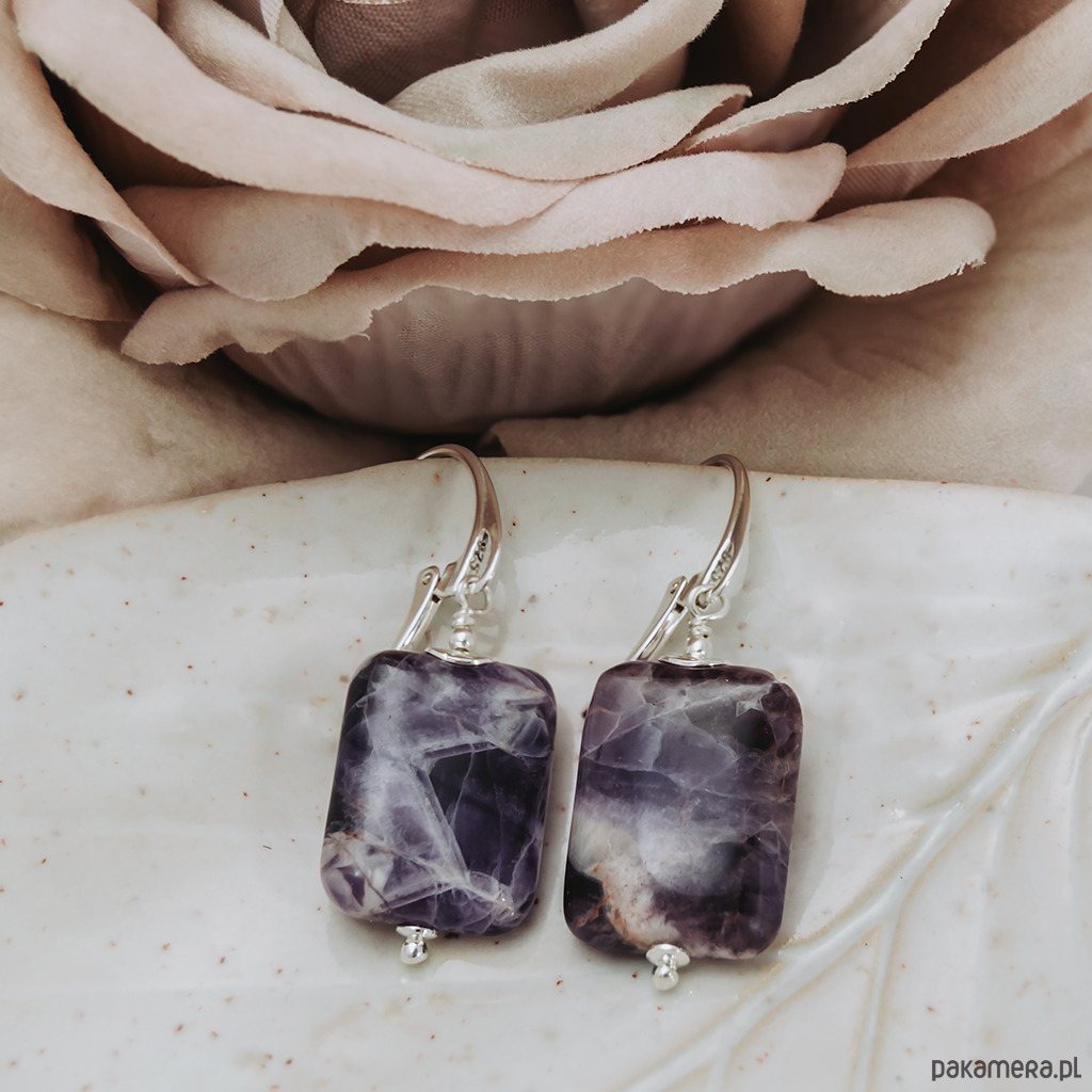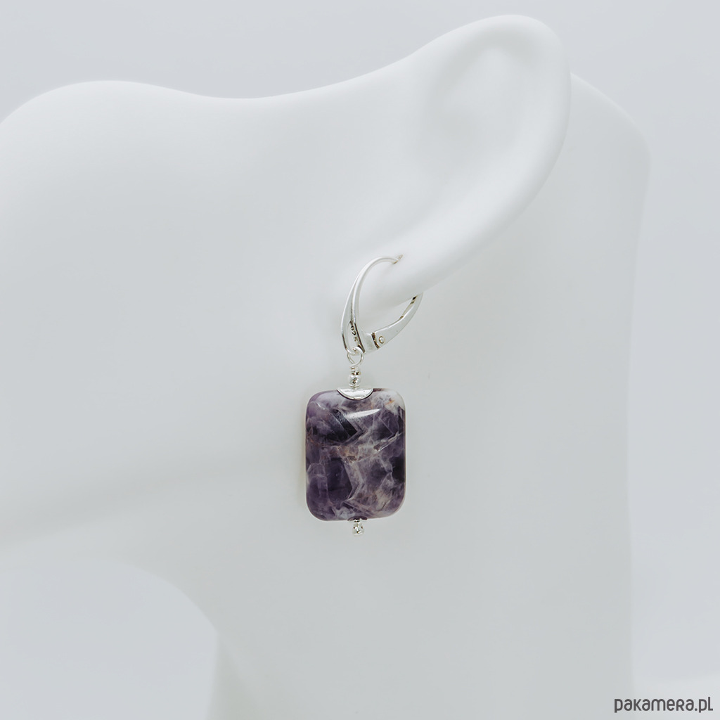 Eleganckie kolczyki kamieniami półszlachetnymi - z ametystem. Na wygodnych, zapinanych biglach angielskich, dobrze trzymają się na uszach.