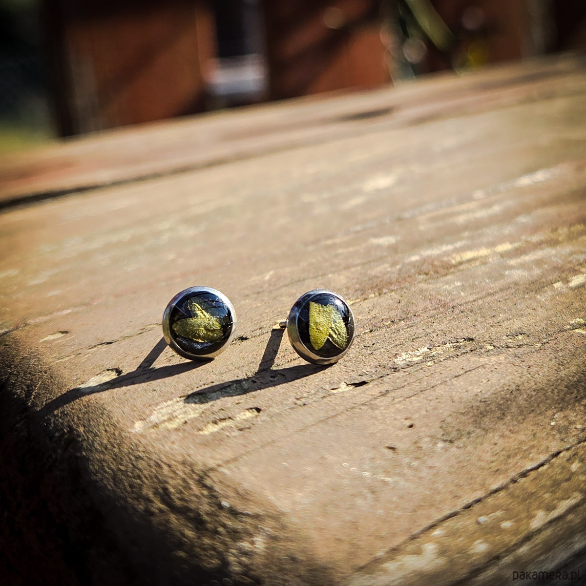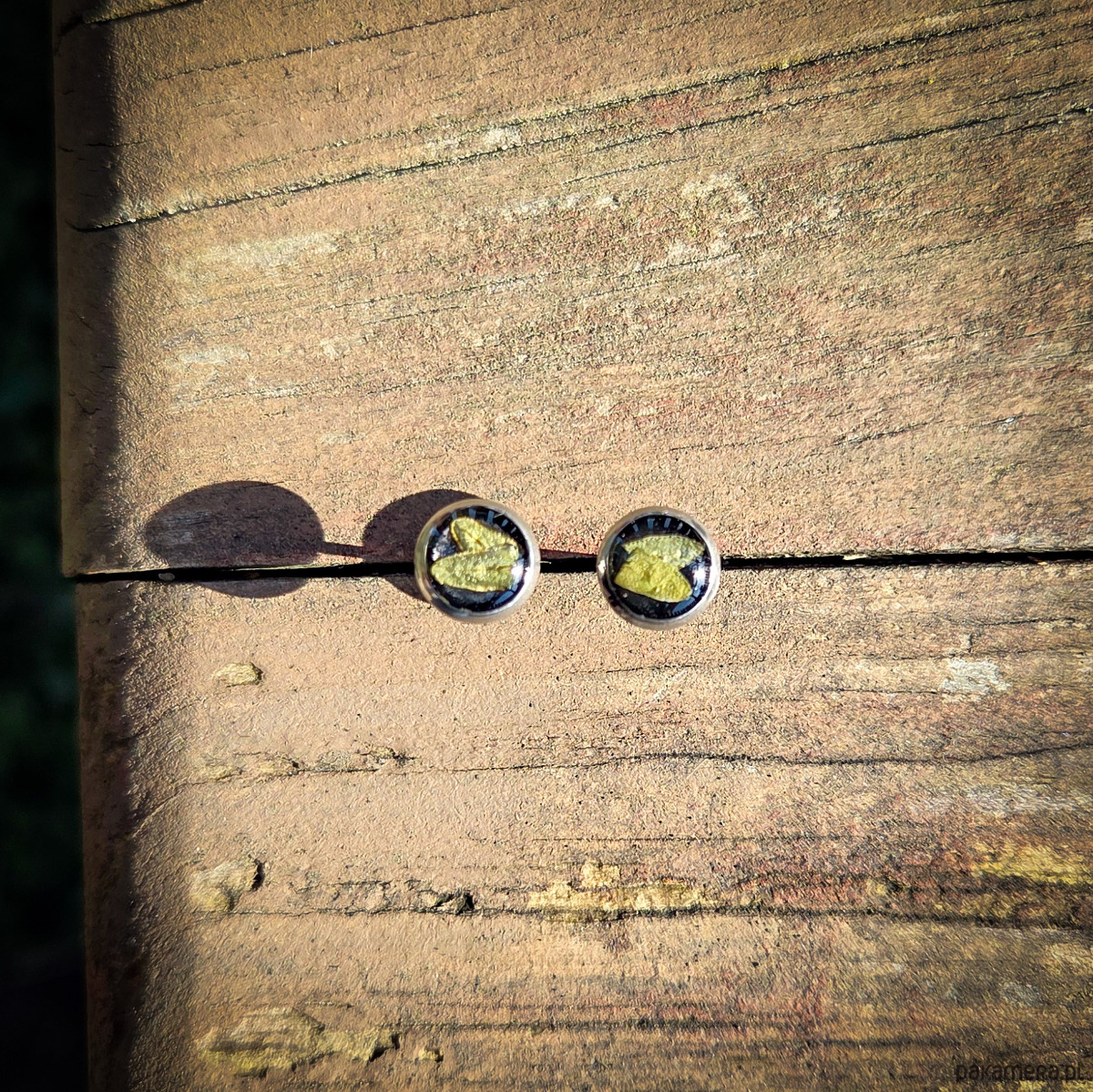 Kolczyki ze stali chirurgicznej z zatopionymi płatkami paprociami. Średnica oczka 8mm