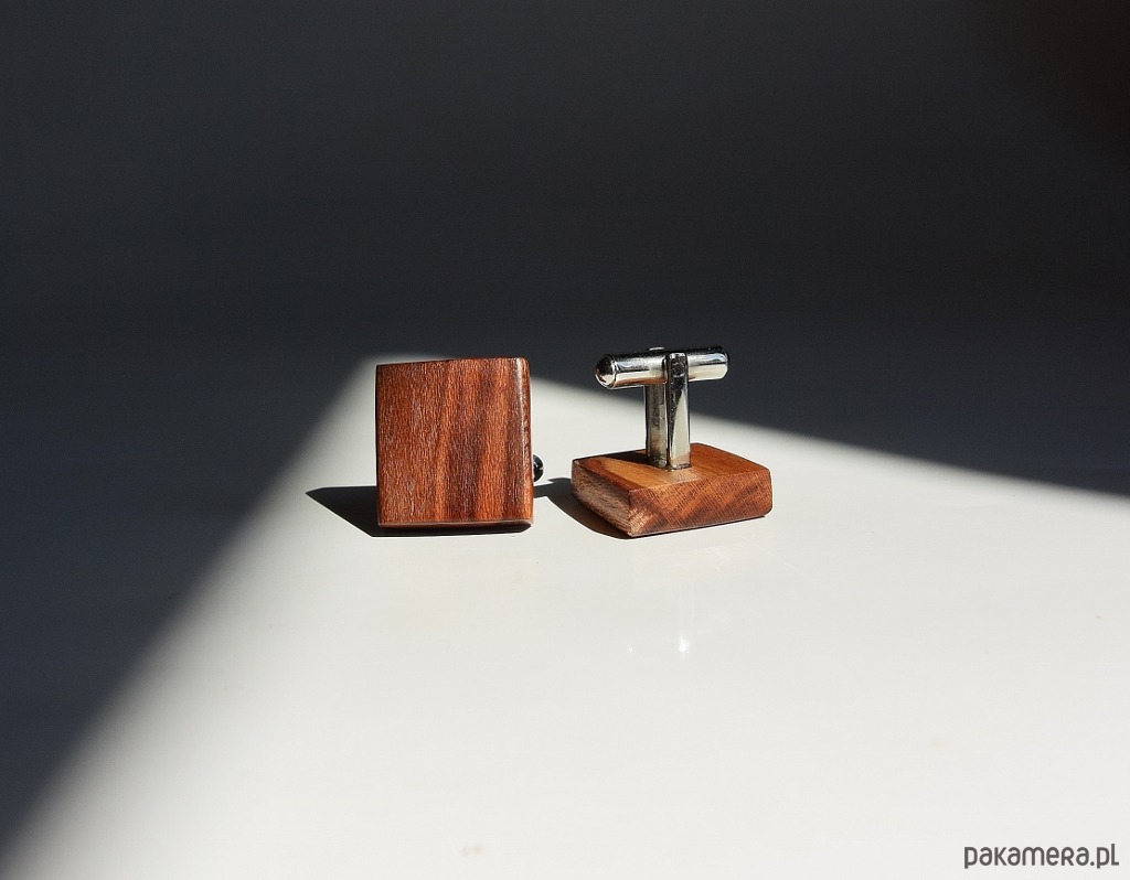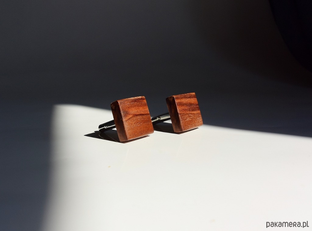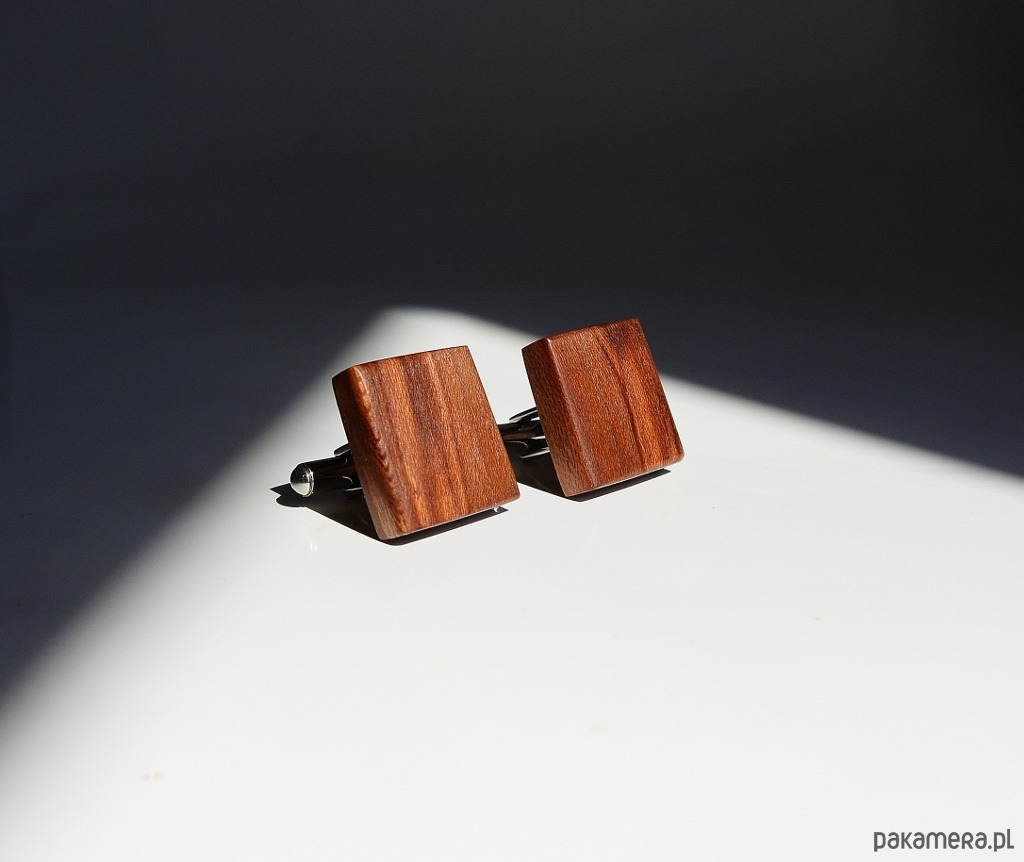 Spinki do mankietów o klasycznym kształcie, zrobione zostały ręcznie z jednego plastra drewna śliwy, przepiłowanego na dwie części. Rysunek namalowany przez przyrodę oraz naturalne przebarwienia sprawiły, że są niepowtarzalne. Zabezpieczone przez wielokrotne wcieranie wosków i polerowanie (BEZ LAKIERU), dzięki czemu są gładkie i aksamitne w dotyku. Bazy spinek są ze stali chirurgicznej i wklejone zostały w ręcznie wywiercone otwory w drewnie, aby TRWALE połączyć oba elementy.