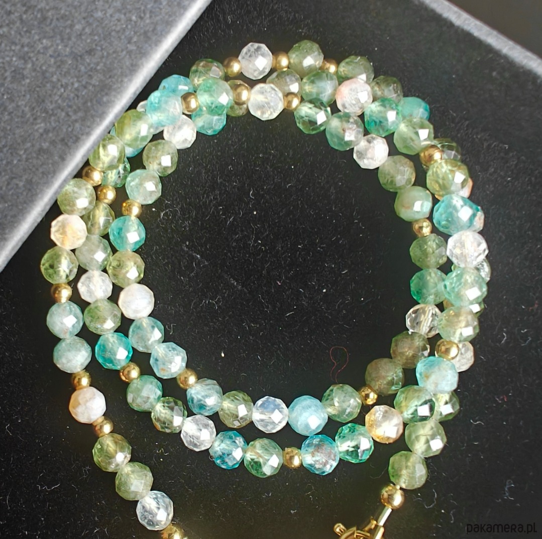 Całość dopełniają elementy ze stali chirurgicznej oraz drobne akcenty ze srebra pozłacanego, które nadają naszyjnikowi subtelnego blasku i trwałości.