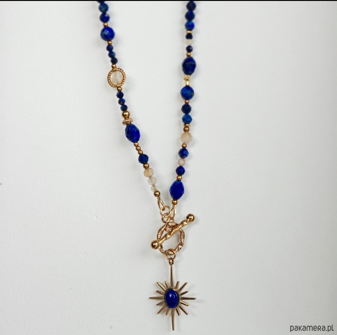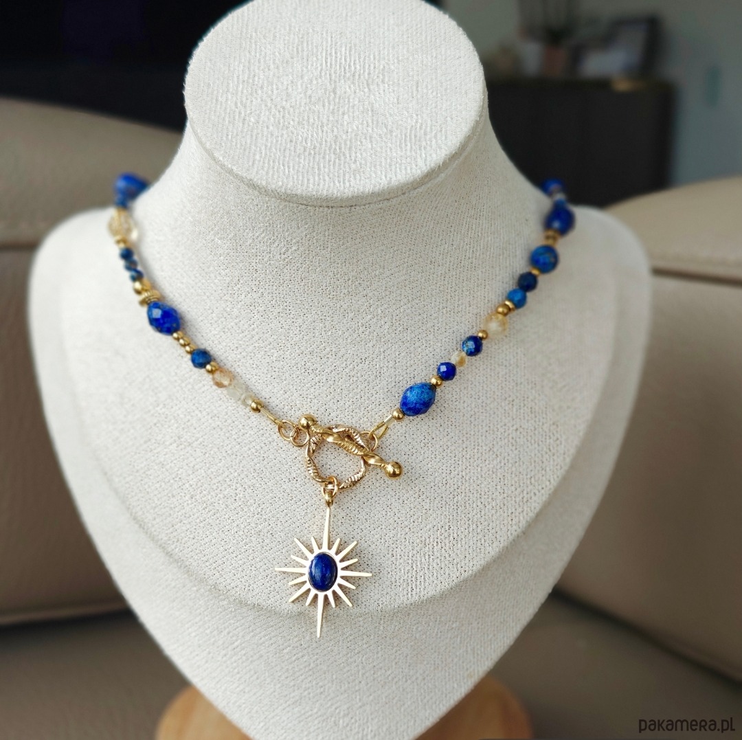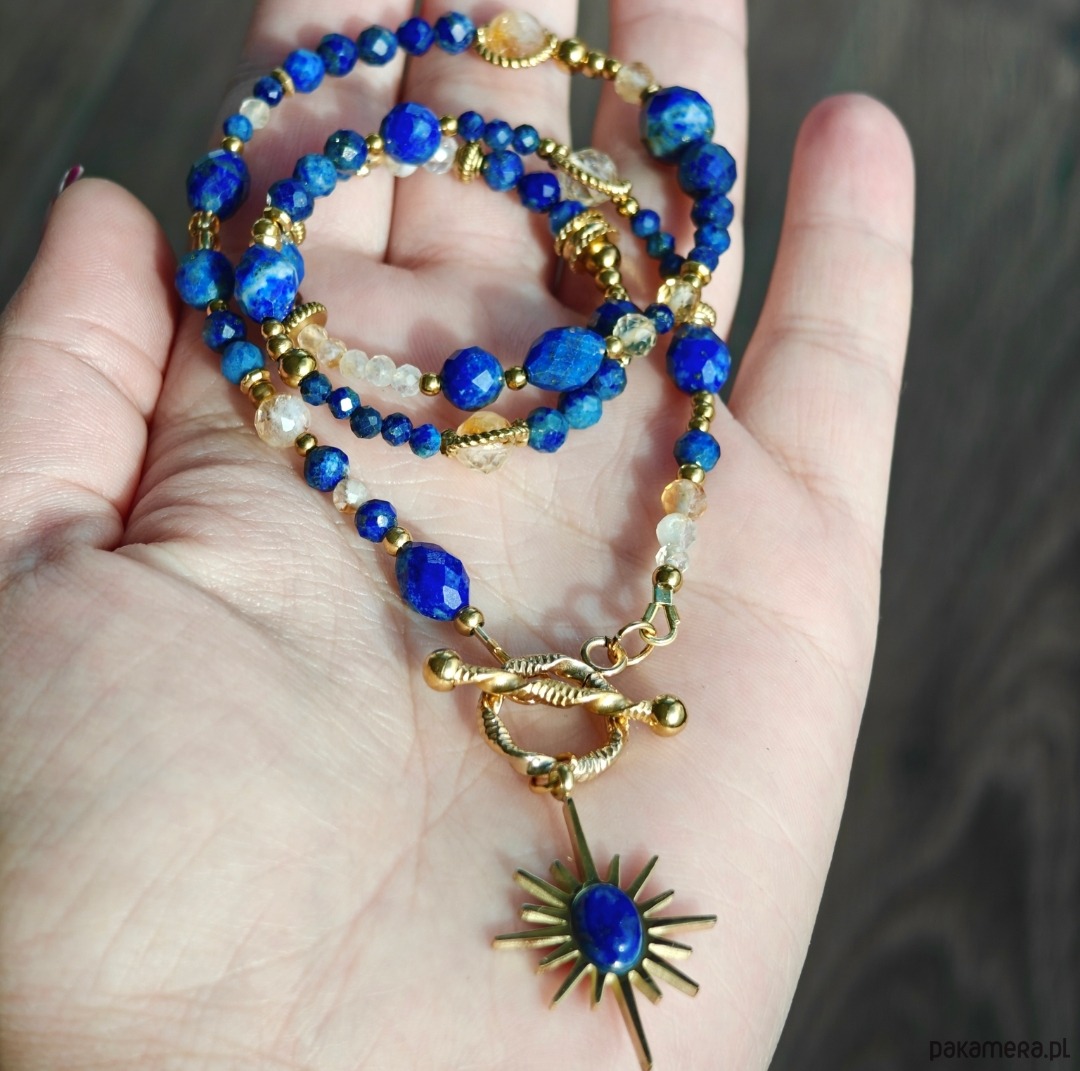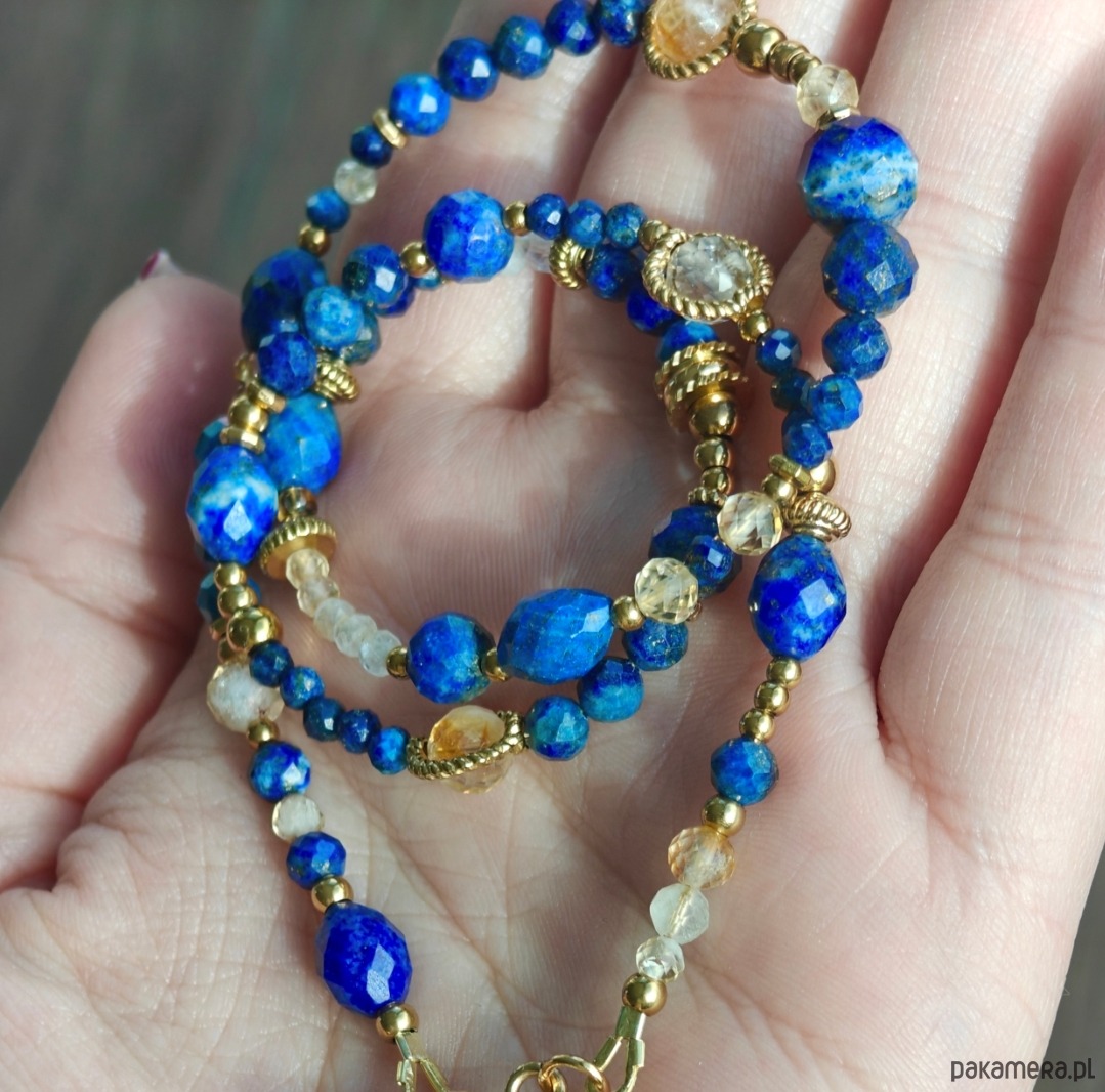 Naszyjnik z lapis lazuli, cytrynu i kryształu górskiego