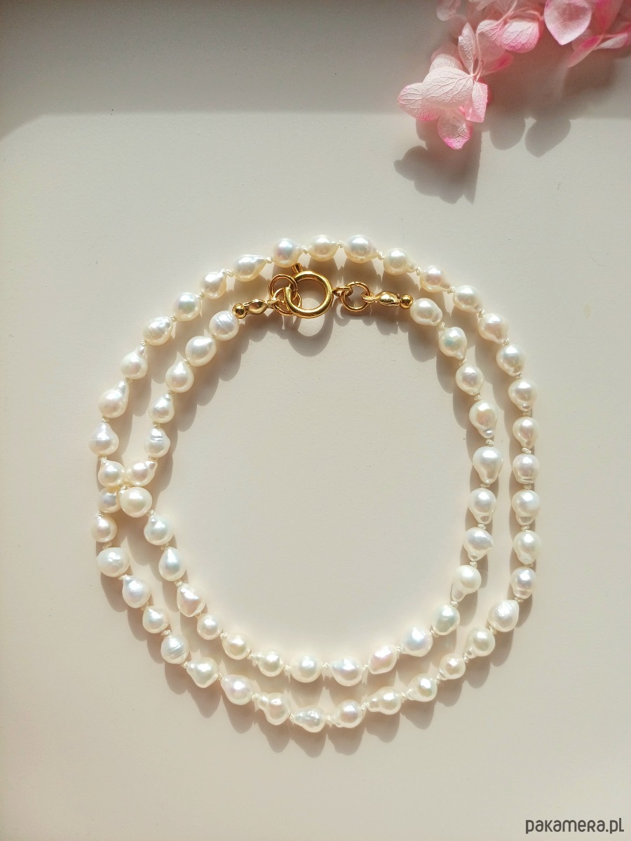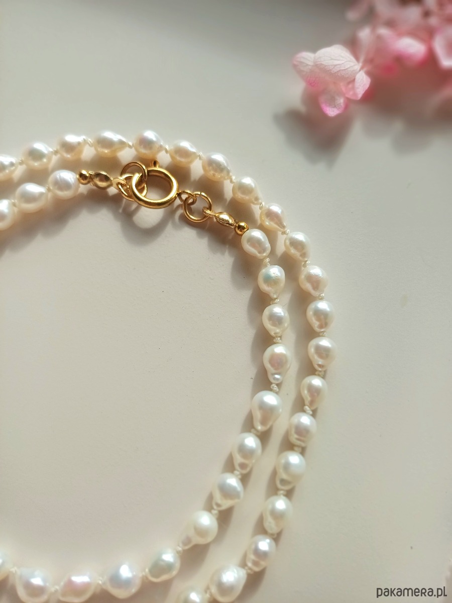 Klasyczny naszyjnik z pereł naturalnych, supełkowany
