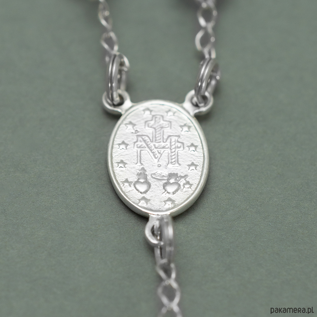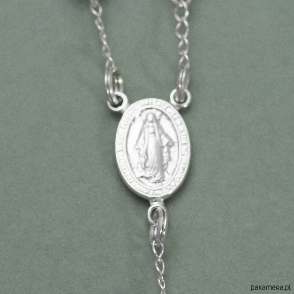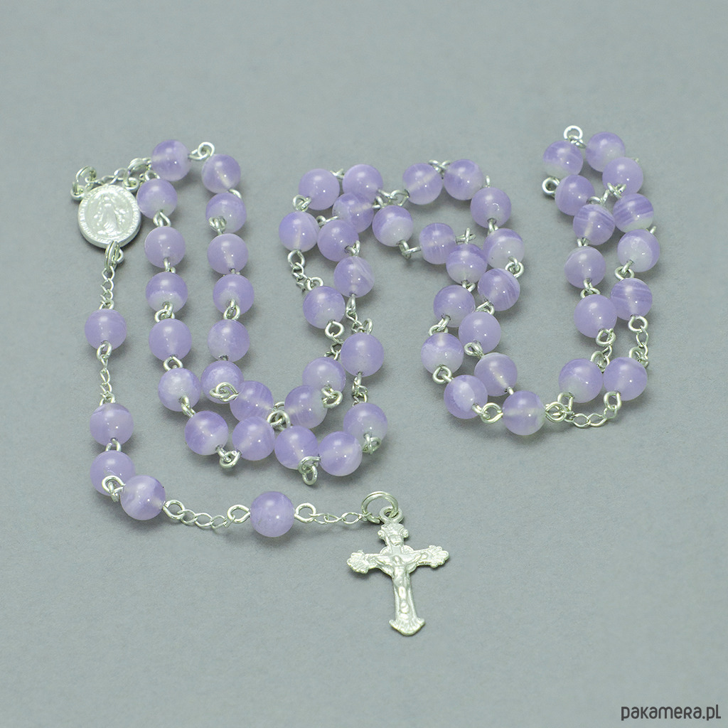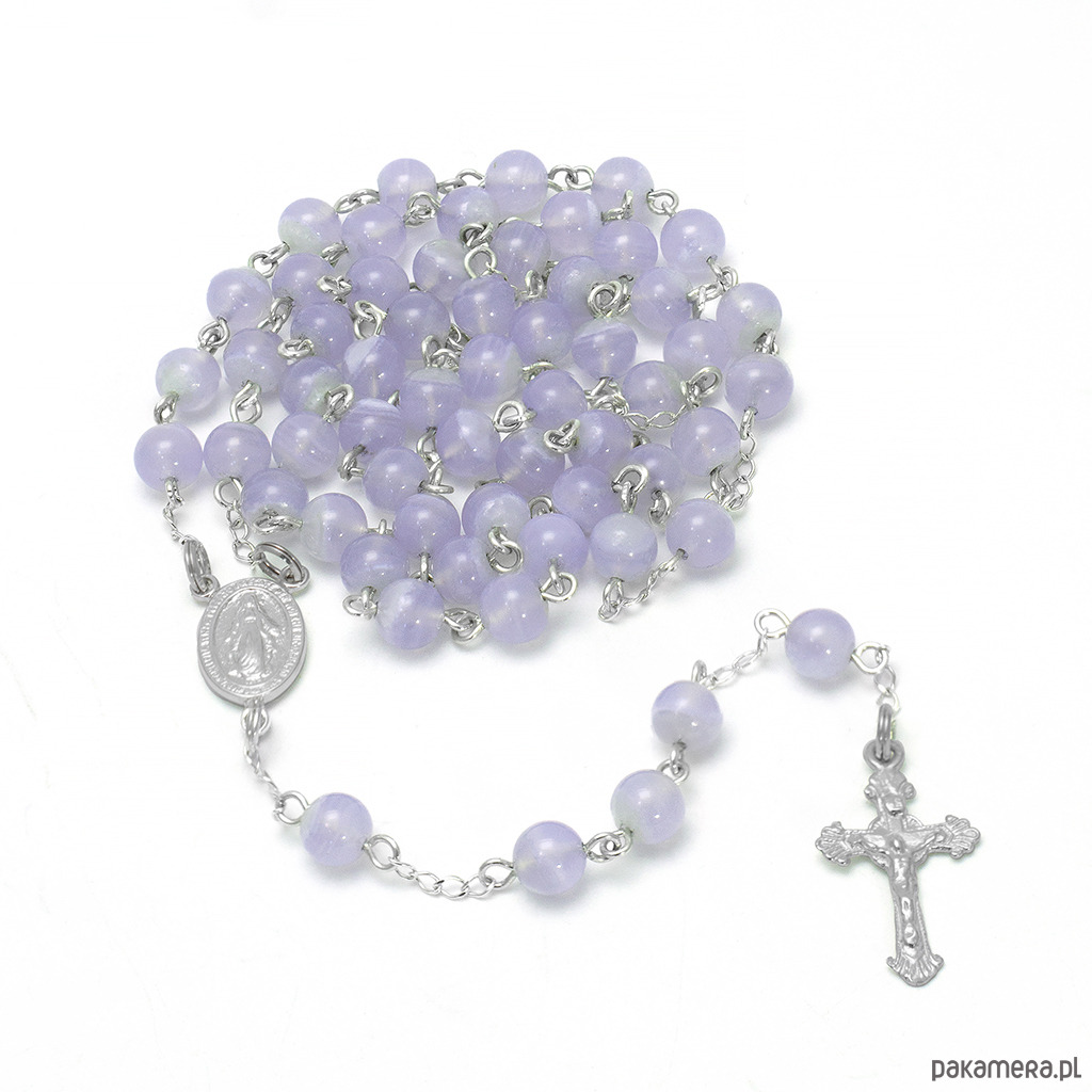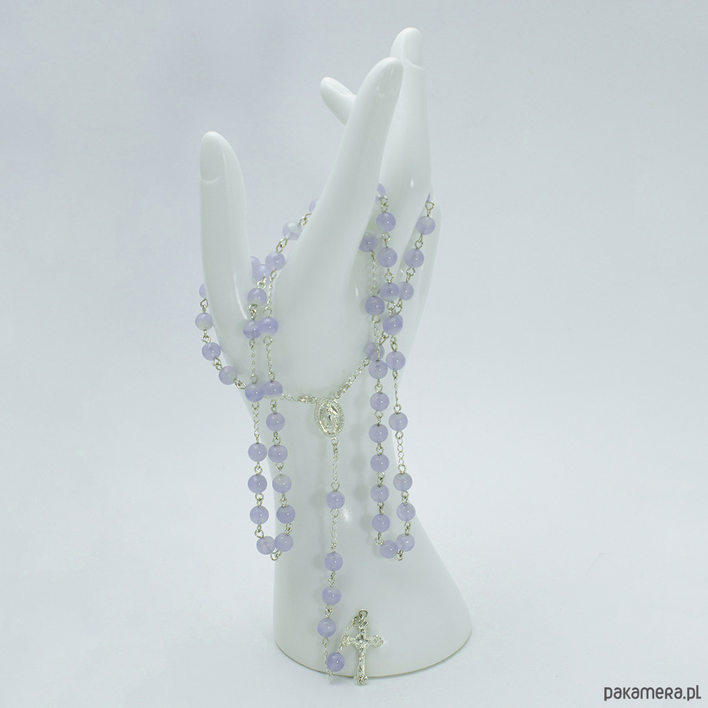 Klasyczny różaniec, RĘKODZIEŁO, I Komunia Św., SREBRO 925, chalcedon 6mm