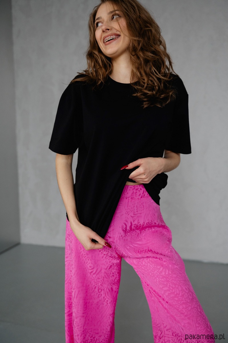 Klasyczna bluzka T-shirt z wysokiej jakości bawełny to podstawowy element garderoby, ktory sprawdzi się w każdej stylizacji. Wykonana z miękkiej i oddychającej bawełny, zapewnia wygodę i komfort noszenia przez cały dzień. Dzięki uniwersalnemu krojowi bluzka doskonale pasuje do codziennych stylizacji – świetnie wygląda zarówno z jeansami, jak i leganckimi spodniami czy spódnicą.