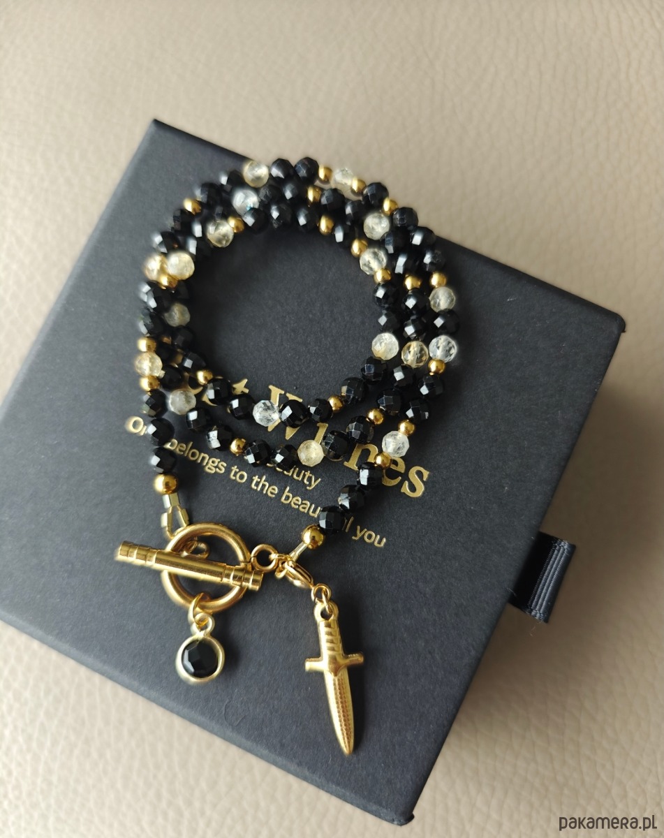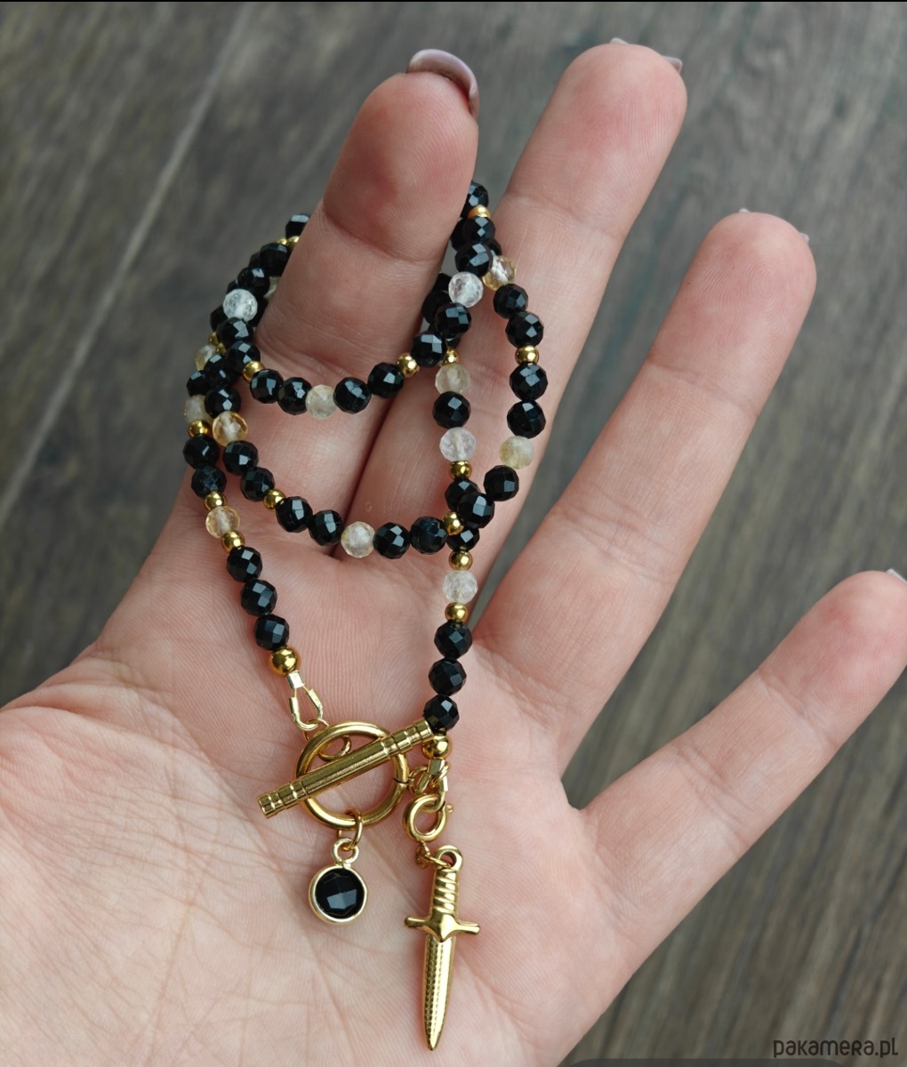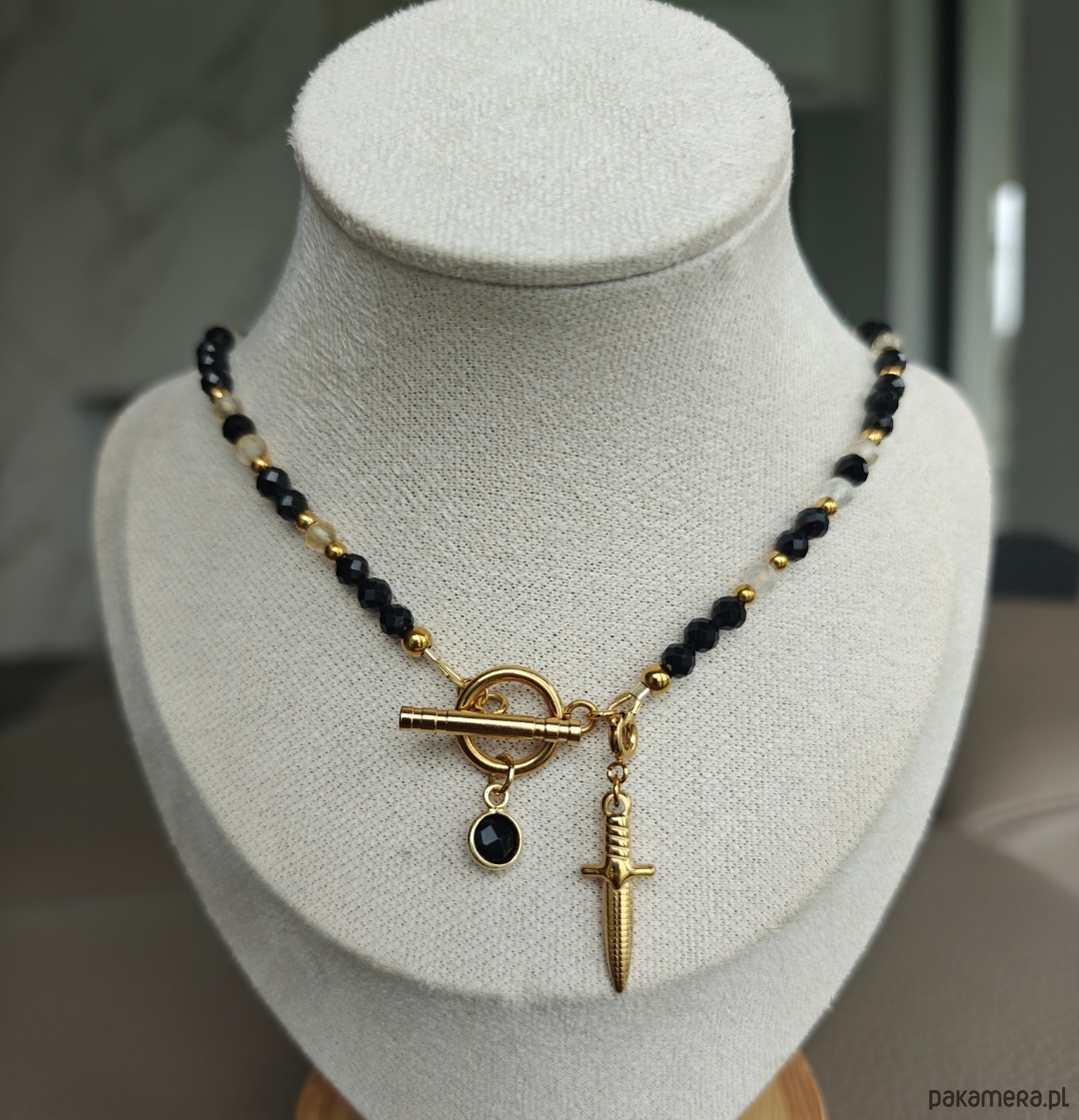 Elegancki naszyjnik z czarnego turmalinu i cytrynu to połączenie klasyki z nowoczesnym akcentem. Drobne elementy ze stali chirurgicznej i srebra pozłacanego dodają mu subtelnego blasku. Ma 41 cm w obwodzie (44 cm z zapięciem i zawieszką), a dzięki odpinanej zawieszce możesz nosić go na różne sposoby i dopasować do swojego stylu. Całość pakowana jest w eleganckie pudełko, które sprawia, że naszyjnik staje się także idealnym pomysłem na prezent. 🎁✨