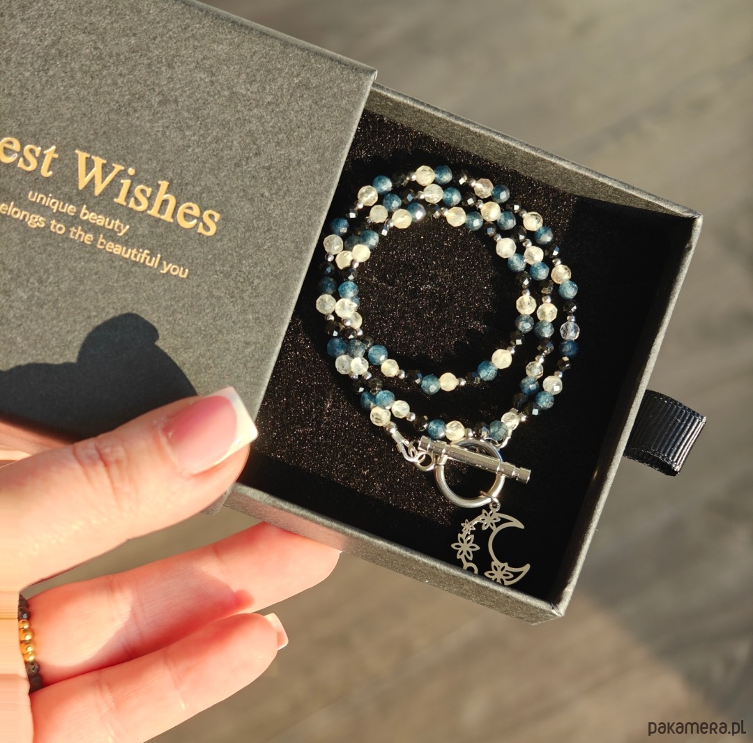 Naszyjnik pakowany jest w eleganckie pudełko, dzięki czemu doskonale sprawdzi się jako prezent. Istnieje również możliwość stworzenia bransoletki do kompletu, aby biżuteria tworzyła spójną, osobistą całość.