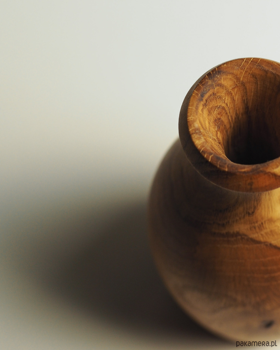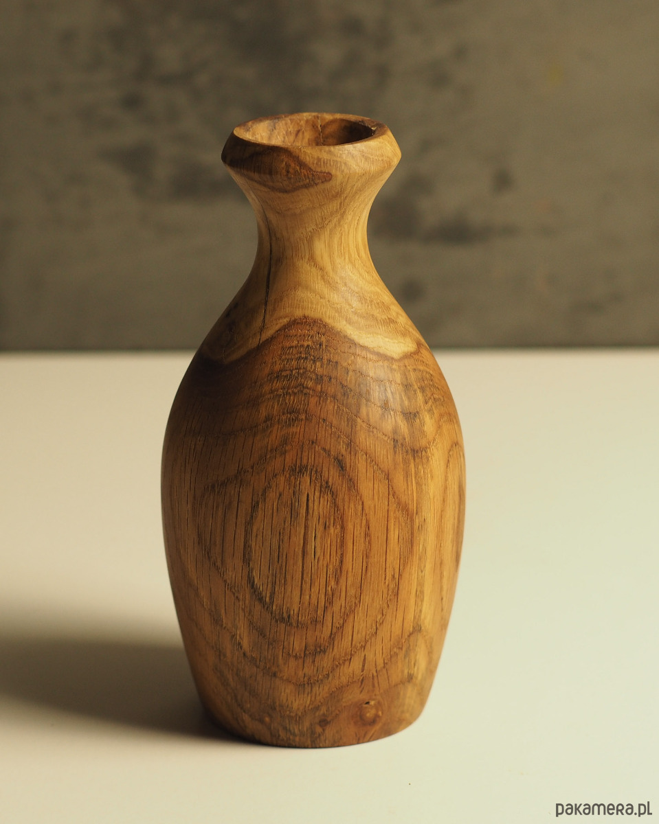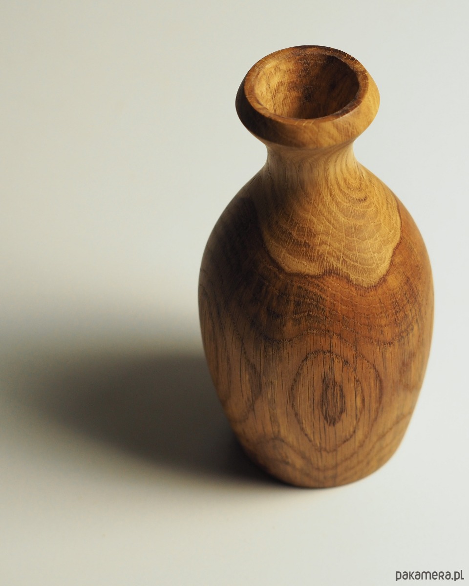 Wazon o klasycznym, pękatym kształcie został wytoczony w jednym kawałku drewna dębowego, co gwarantuje jego trwałość i solidność.