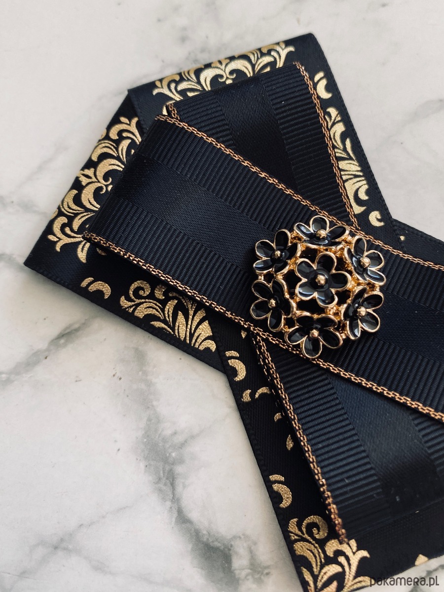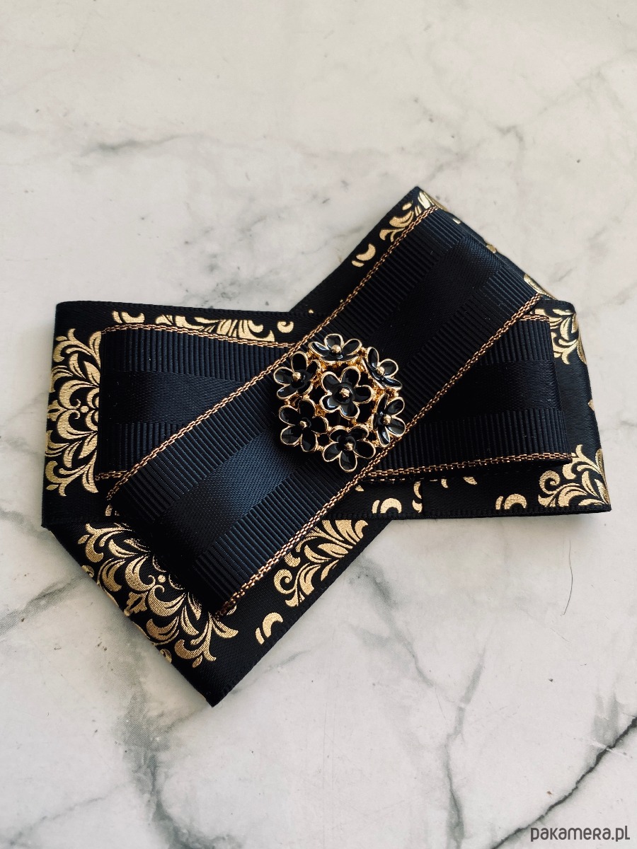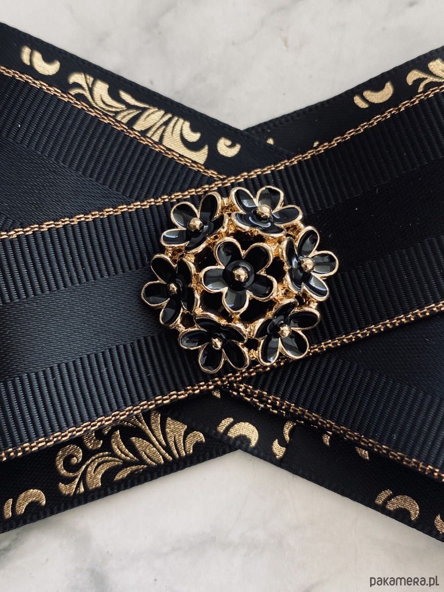 Czarna Brosza z eleganckim złotem z mega delikatną ozdobą.