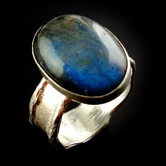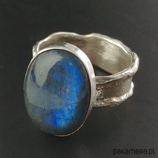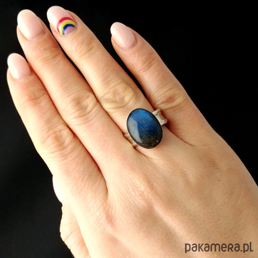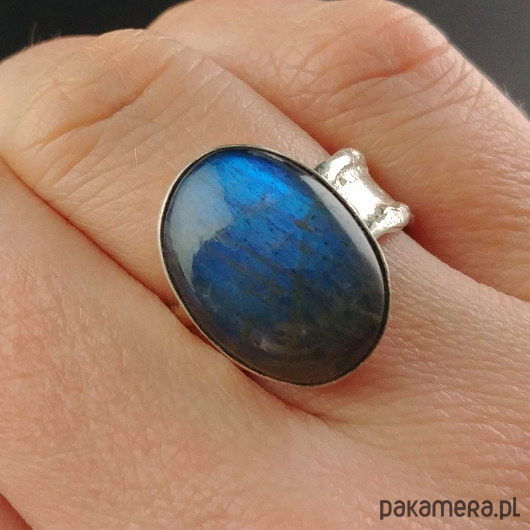 Pierścionek z labradorytem w prostej oprawie srebra próby 925.Pękny kamień o kobaltowej tafli. Rozmiar jubilerski 17, do powiększenia na max 20. Wymiary oprawy kamienia 19 x 13 mm, Waga 7 g. Pierścień zapakowany w ozdobne pudełeczko.