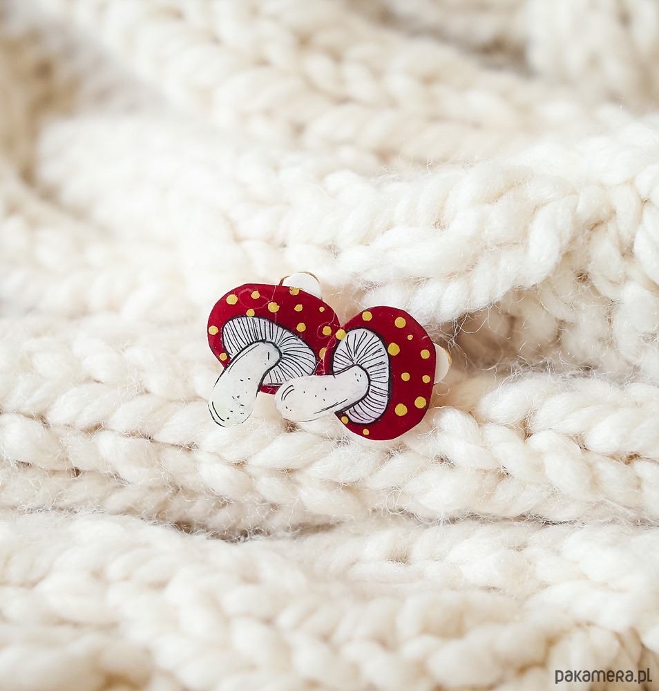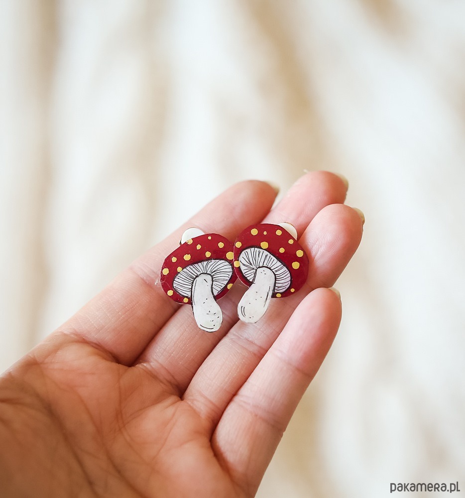 Czerwone muchomorki, urocze i jedyne w swoim rodzaju klipsy.