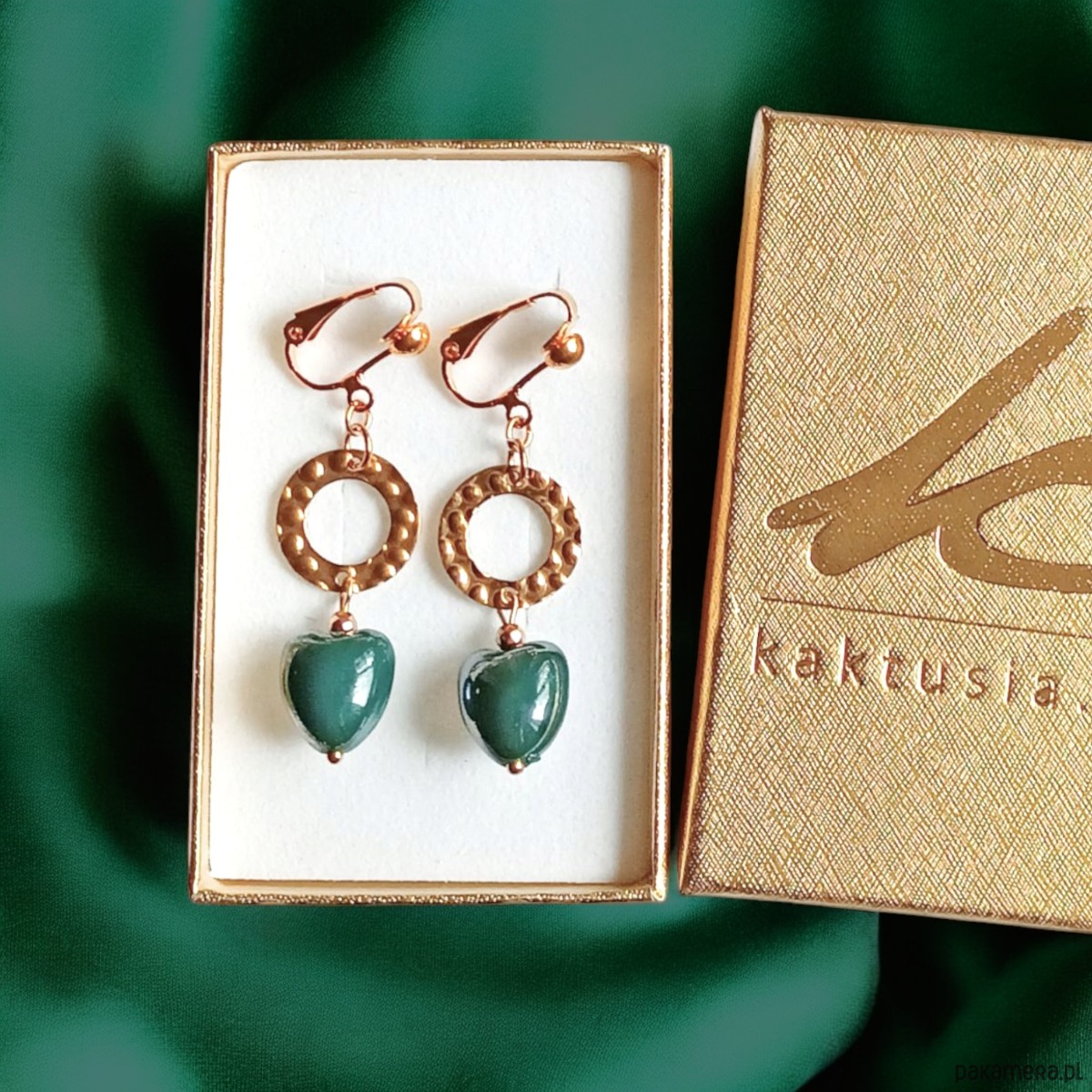 Klipsy długie : serduszka ceramiczne : ciemnozielone
