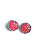 Oryginalne klipsy z kaboszonem z żywicy - druzy, mieniący się w odcieniach ciemnego różu, czerwieni i złota.