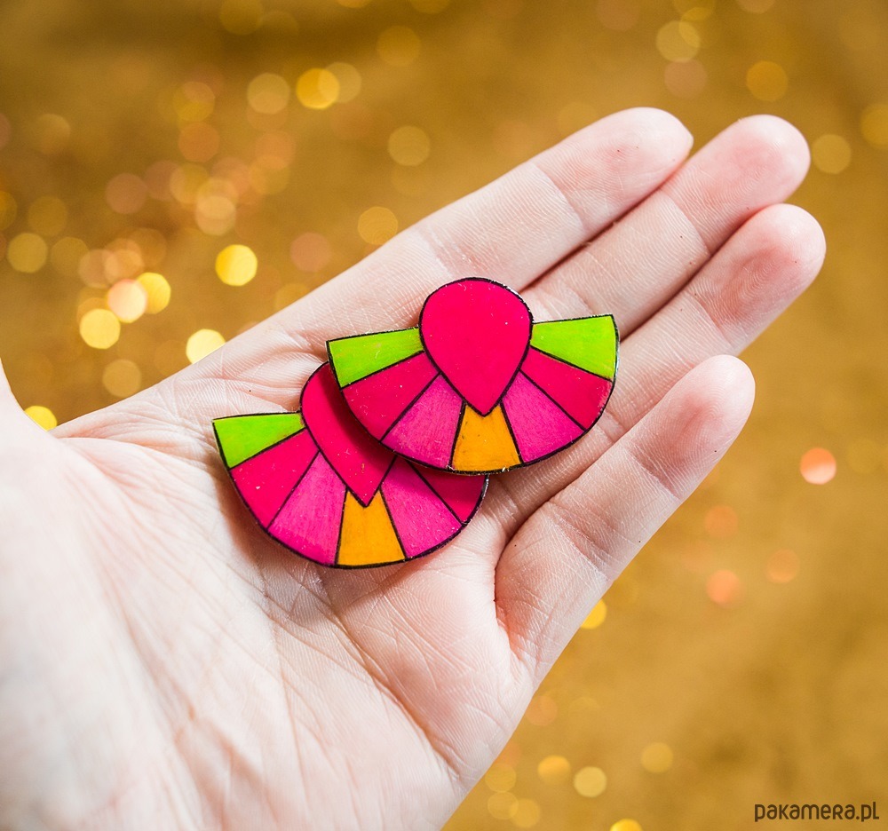 Odważne, geometryczne formy i eksplozja kolorów – te klipsy to małe dzieła sztuki, które ożywią każdy strój! Inspirowane stylem retro i współczesnym designem, tworzą niepowtarzalną kompozycję kształtów i barw. Idealne dla miłośniczek oryginalnych dodatków, które chcą wyróżnić się z tłumu i dodać stylizacji artystycznego pazura.