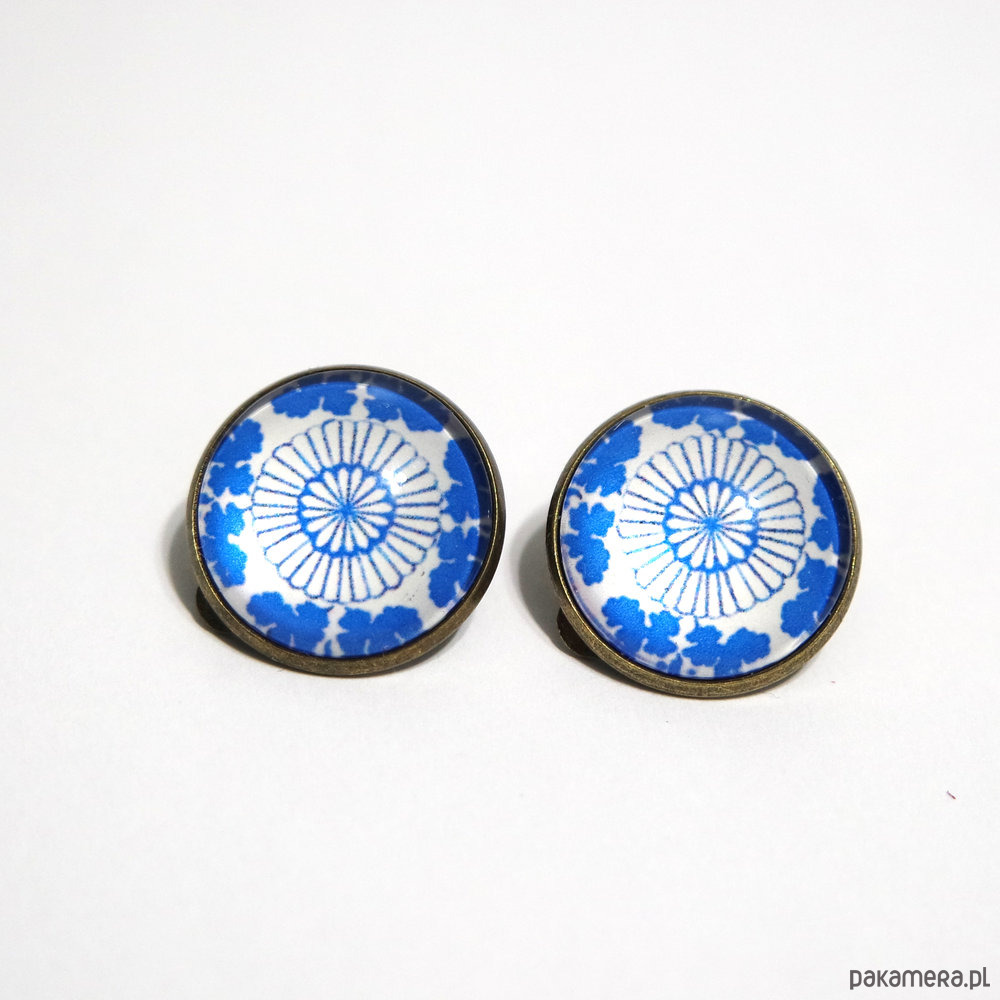 Klipsy - Kafelki niebieskie, kwiat, wachlarz - duże, brąz