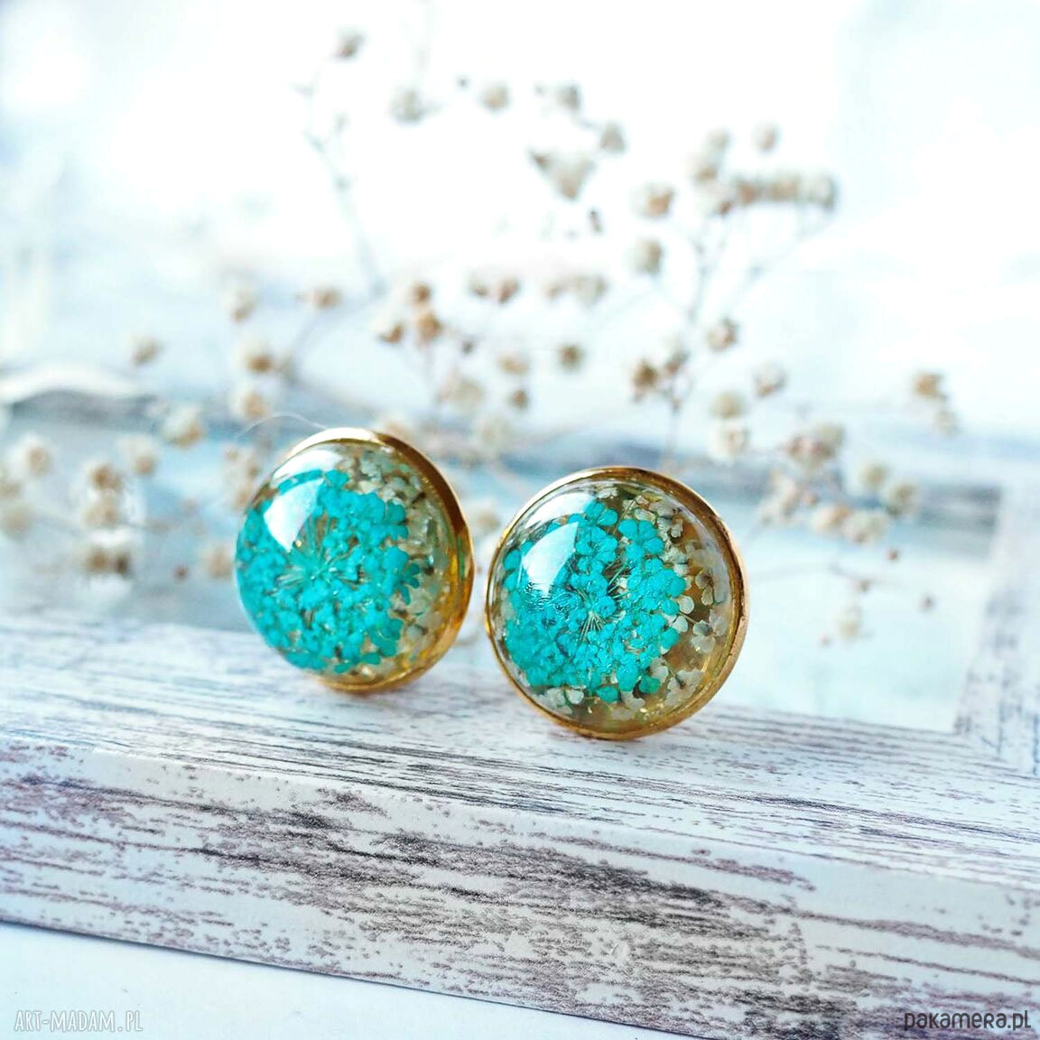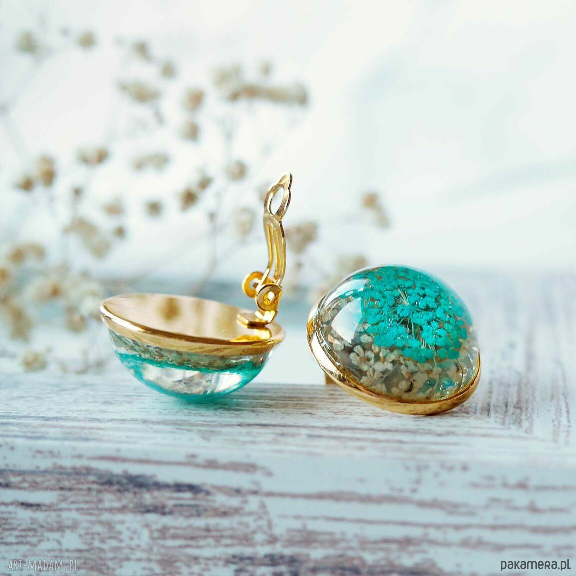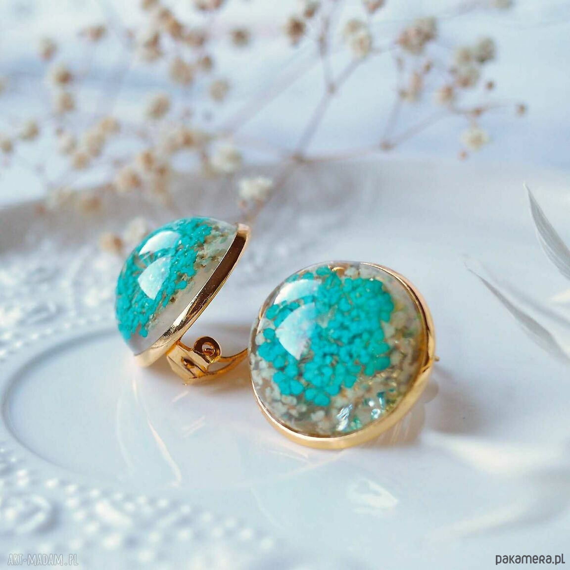 KLIPSY KWIATOWE z prawdziwymi suszonymi kwiatuszkami w żywicy