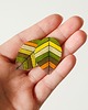 Klipsy w kształcie żółto-zielonych listków w stylu Jamaica. Lekko połyskujące, o żywej, energetycznej kolorystyce, przyciągają wzrok i dodają stylizacjom wyrazistego, wakacyjnego charakteru. Delikatny kształt liści sprawia, że klipsy są jednocześnie efektowne i lekkie w odbiorze – idealne na lato, festiwale lub jako oryginalny akcent na co dzień.