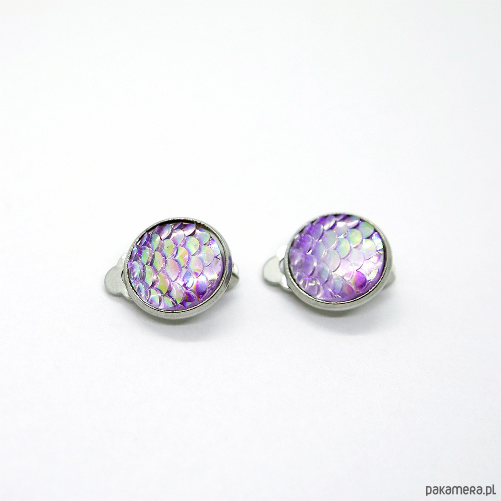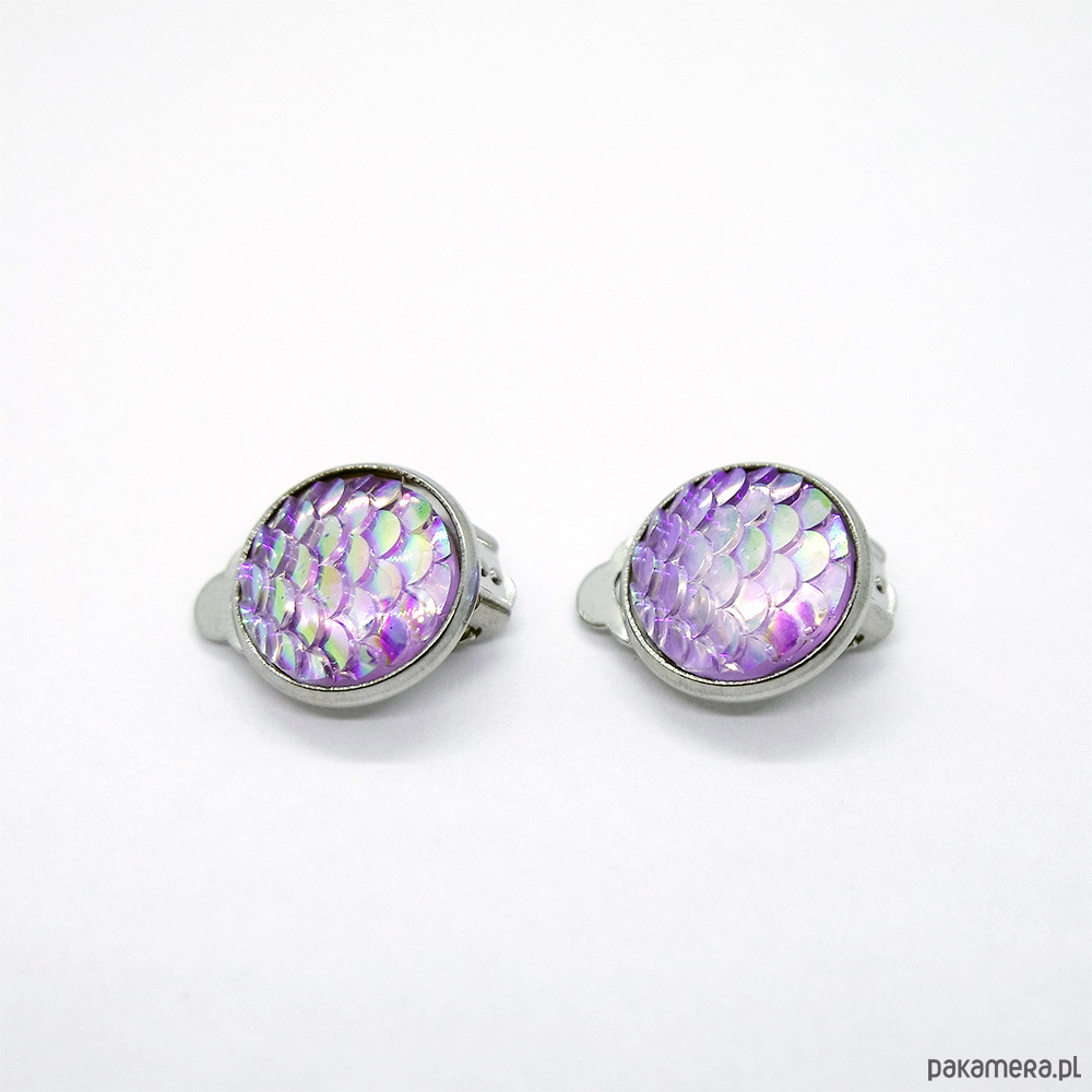 Niezwykłe, subtelne, małe klipsy z kaboszonem z żywicy imitującym łuski.