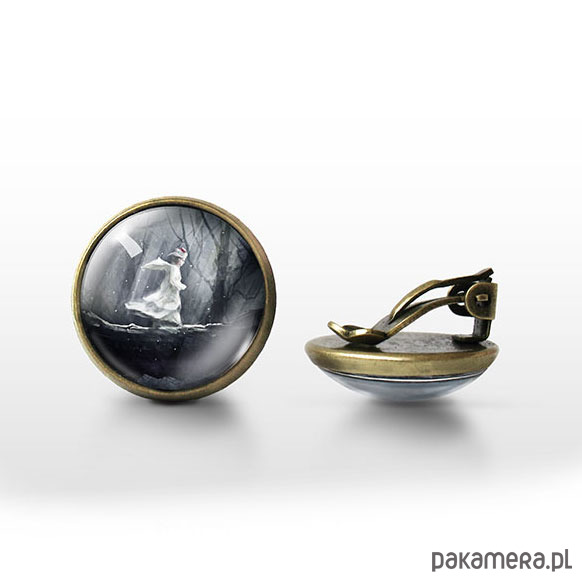 Grafika ukryta w prostych, eterycznych klipsach, pod osłoną przeźroczystego półokrągłego szkiełka.