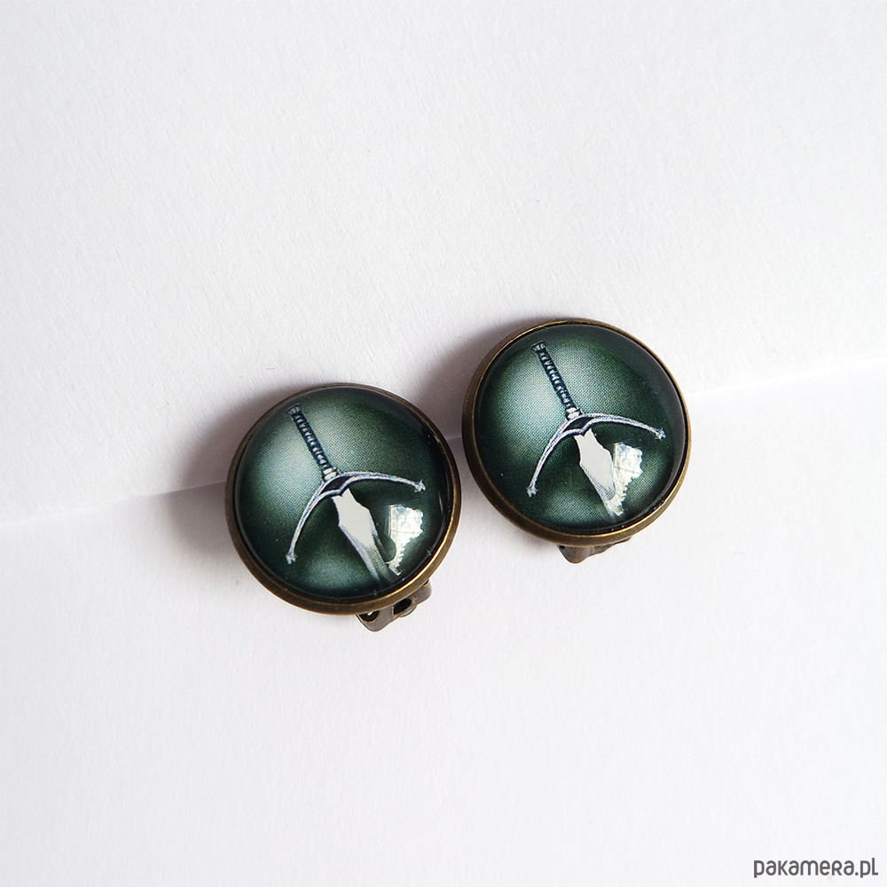 Grafika ukryta w prostych, eterycznych klipsach, pod osłoną przeźroczystego półokrągłego szkiełka.