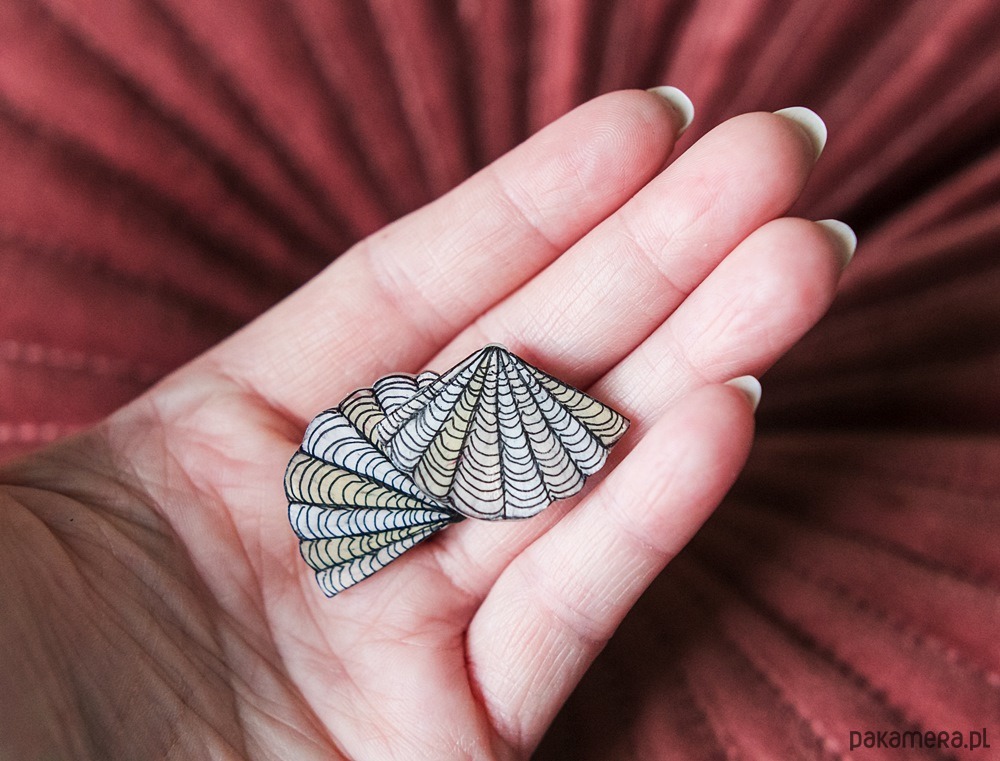 Małe wakacje dla uszu – bez piasku w butach i bez parawanu. Każda muszelka została ręcznie narysowana, więc nie ma dwóch identycznych egzemplarzy (jak na prawdziwe skarby z plaży przystało). Delikatne, lekkie i gotowe szumieć morzem nawet w środku miasta.