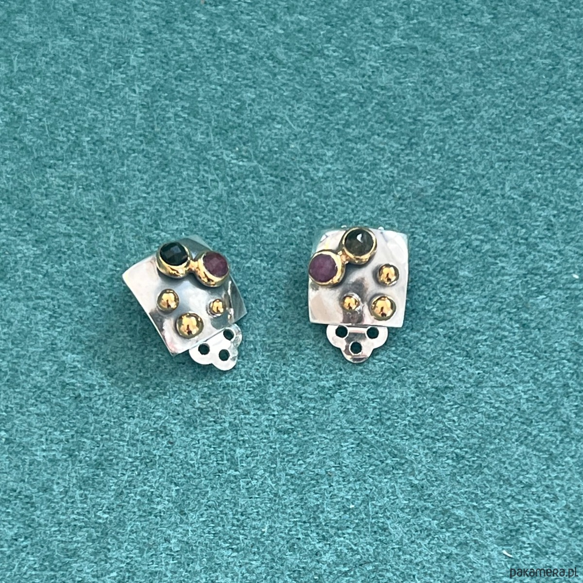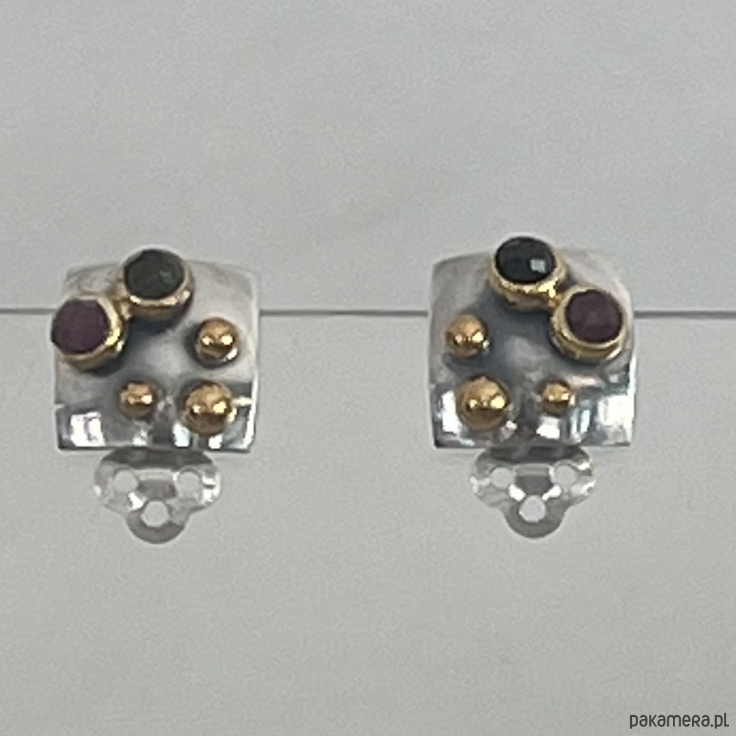 Modowe klipsy, wykonane ze srebra próby 925 z turmalinami oprawionymi w srebro, pozłacane.