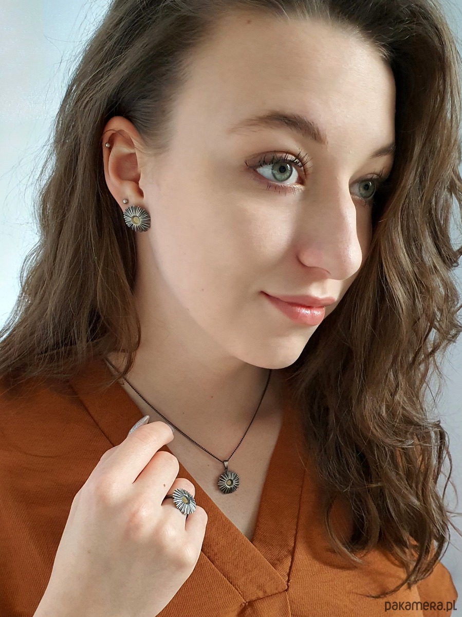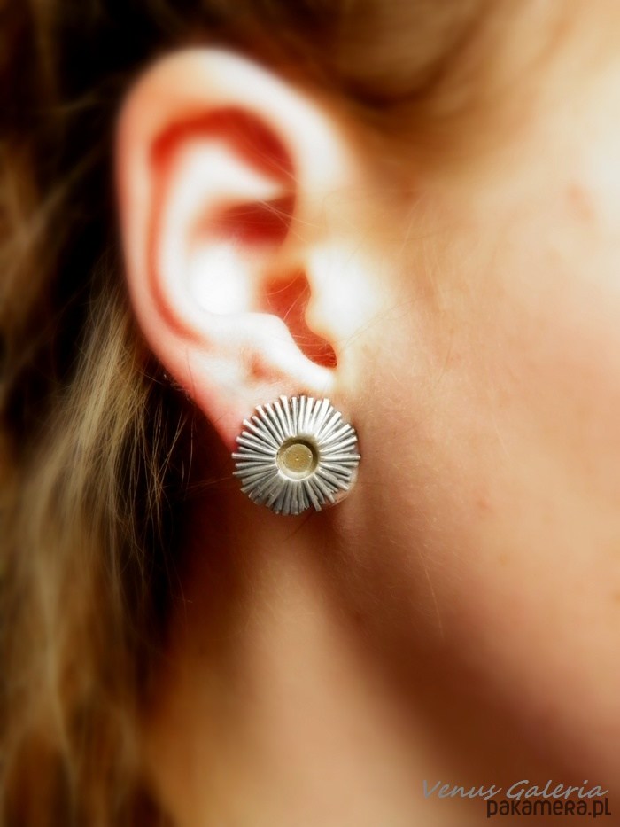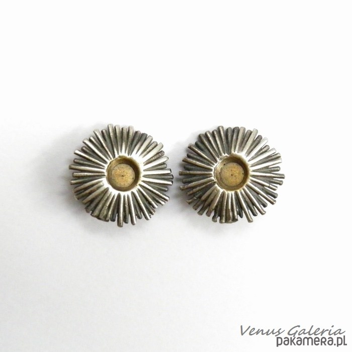 Klipsy zostały wykończone oksydą w kolorze szarym, środek pomalowany złotem.